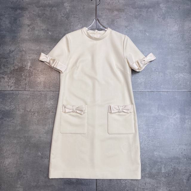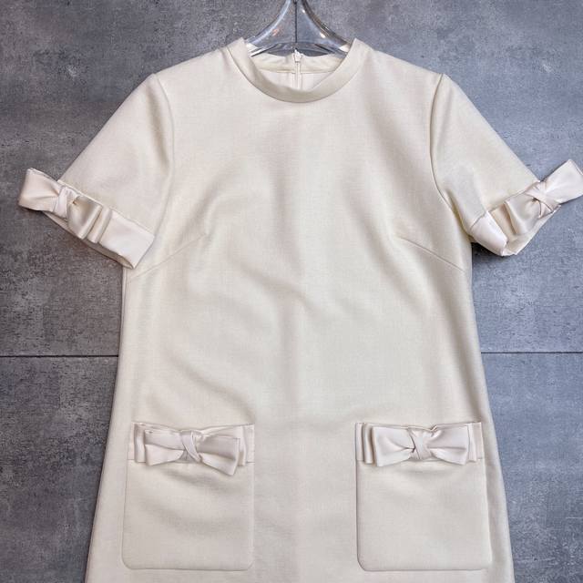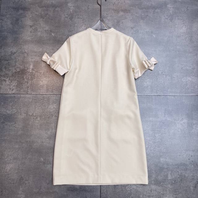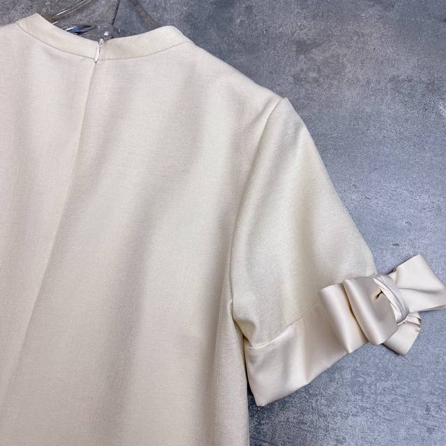 The same style as the celebrity, Valent0ڢ show, 2025 early autumn counter new product, daily essential item skirt bow elegant temperament noble solid color dress V's dress will never go out of style three-dimensional tailoring can well modify the figure short-sleeved dress