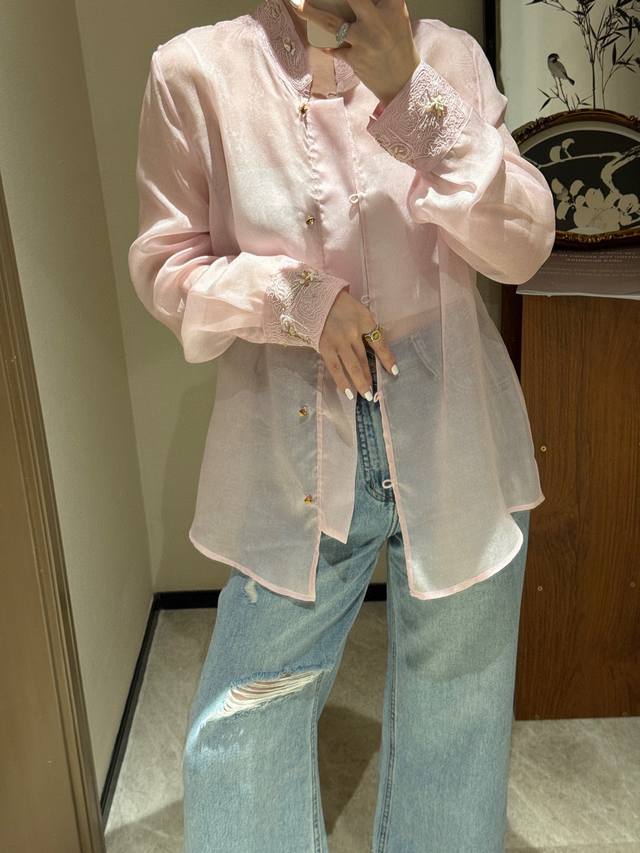 Re-sale single-piece spot silk organza embroidered beaded top