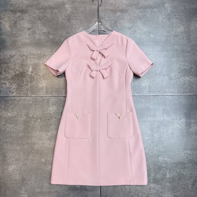 Hot-selling Valent 0ڢ Runway 2025 Early Spring Haute Couture Collection New Arrival, Luxurious and Elegant Everyday Essential Dress with Bow, Elegant and Noble Solid Color Dress. Valent's dresses will never go out of style. Three-dimensional tailoring can flatter your figure. Short-sleeved dress