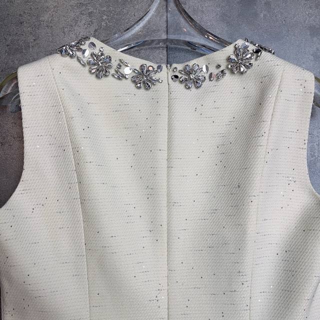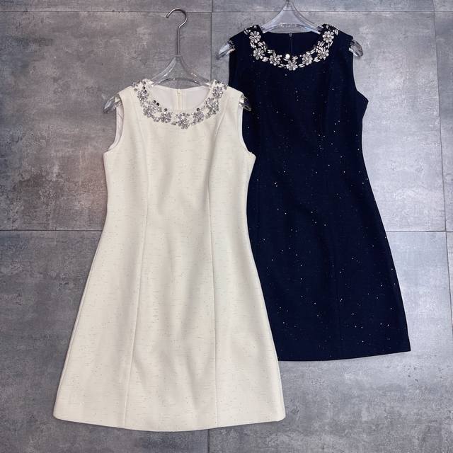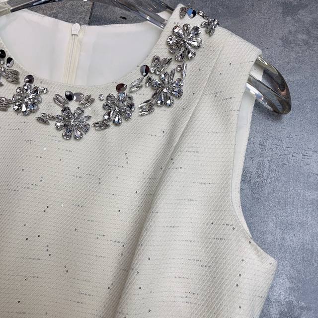 Hot-selling Valent0 1:1 replica, 2025 Autumn/Winter New Heiress Dress, Handmade with Beads and Rhinestones, High-End Feel, Super Slim Fit, Sleeveless Dress