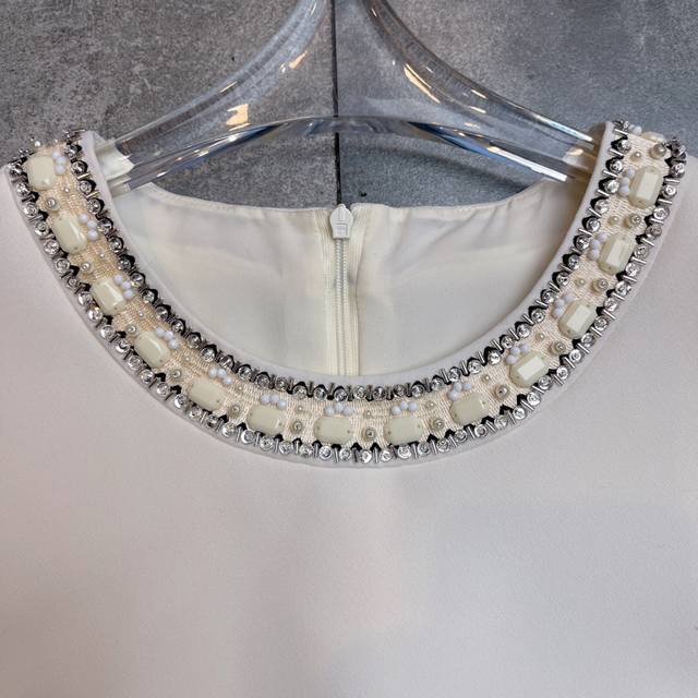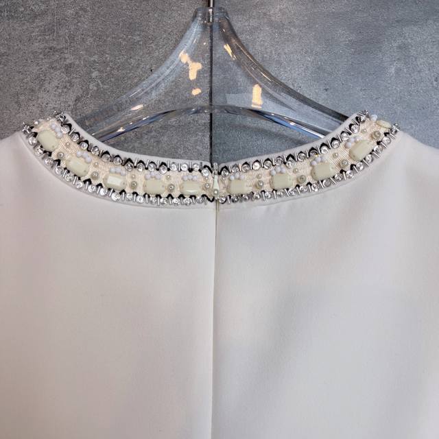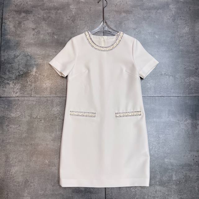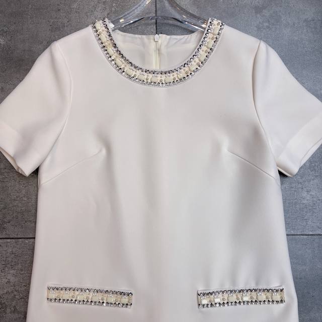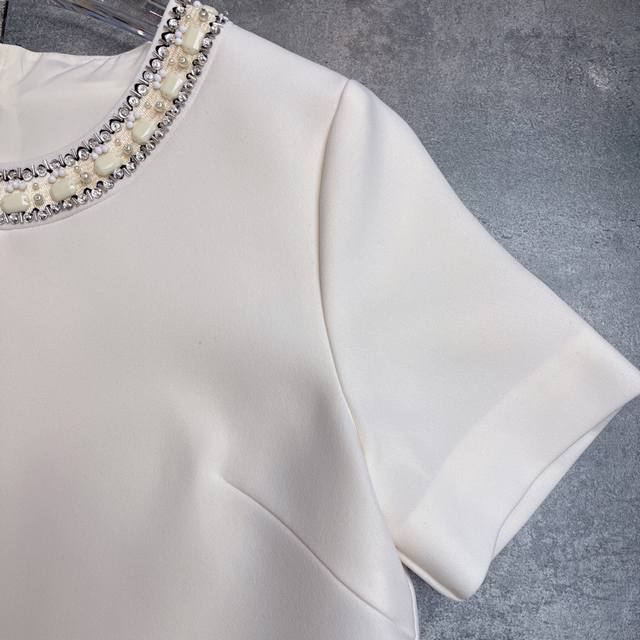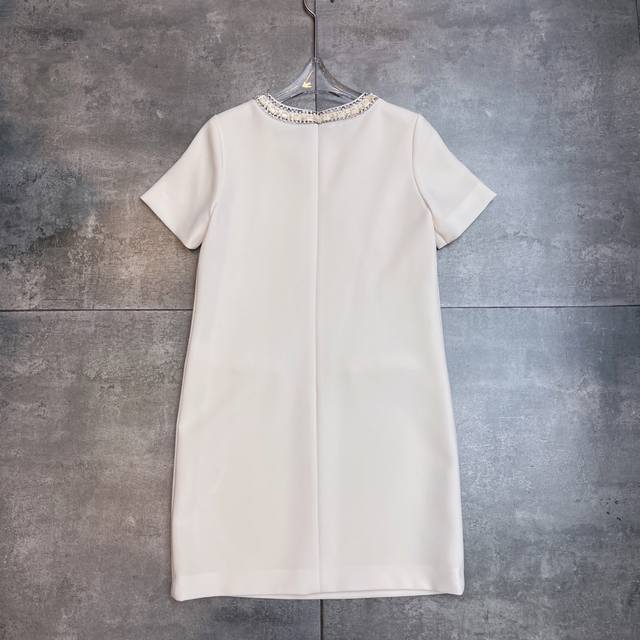 Hot-selling Valent0 2025 Spring/Summer collection, new work by Michele, handcrafted with diamond embroidery, a sophisticated look for a wealthy heiress, celebrity style, loose short-sleeved dress