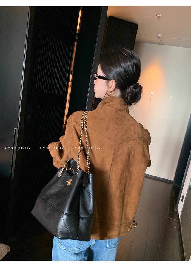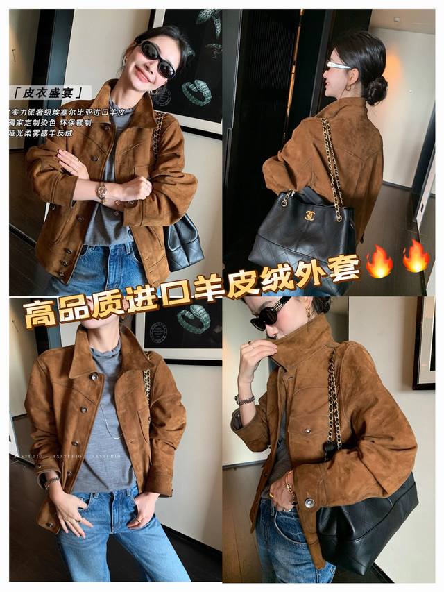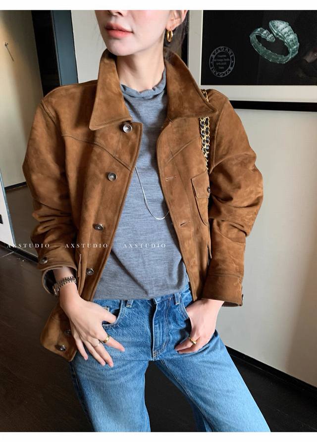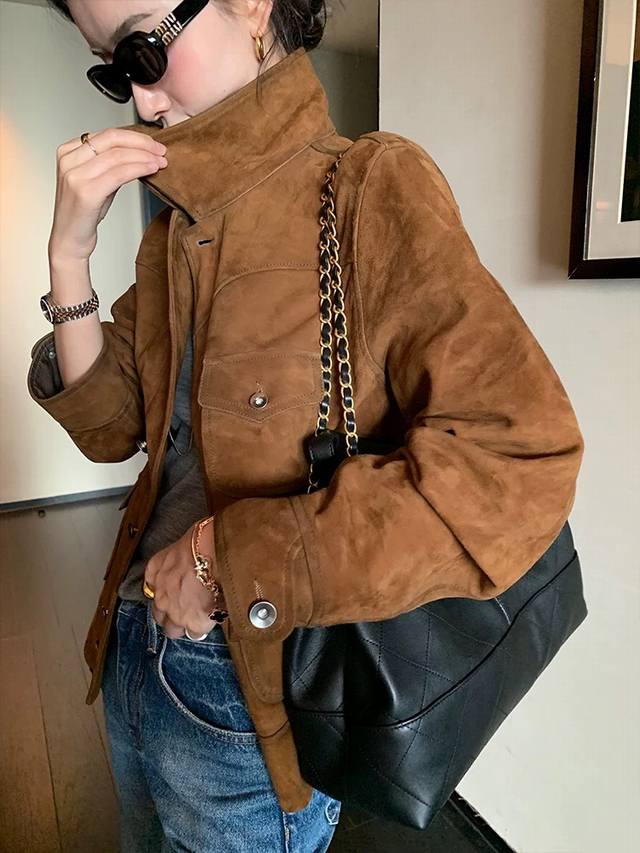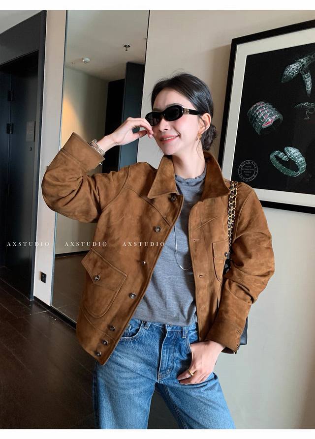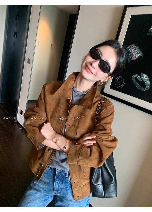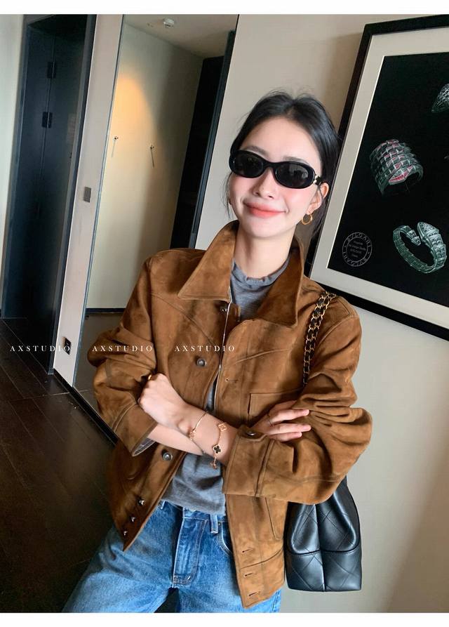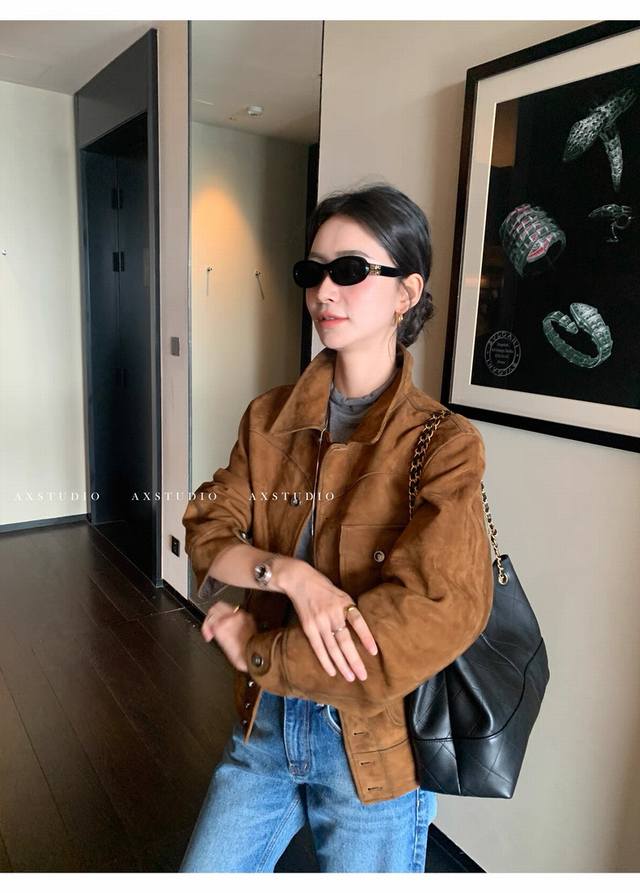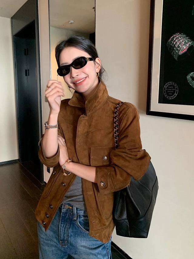 Retro and casual old money style matte soft suede sheepskin coat, the whole leather surface is soft and fleshy, with more muscular three-dimensional shaping, and the classic barn style color is timeless. The upper body is very low-key but has a strong sense of quality and a super stylish look! Smlxl