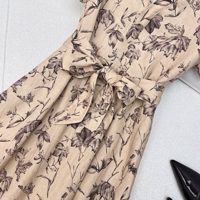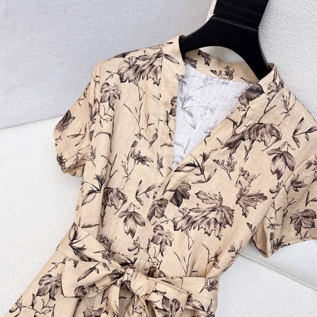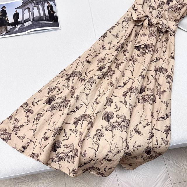 Retro and elegant Cd 25Ss The latest spring and summer floral pattern print long dress is made of 100% linen fabric, comfortable and breathable, very suitable for summer wear, fashionable and white, absolutely unique, high waistline drawstring waist design, 3:7 ratio, huge leg length, concave shape, must-have for travel, very photogenic, all in one color, available for sale Sml S size: shoulder width 42 bust 92 length 126 manual measurement, there may be errors