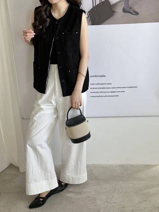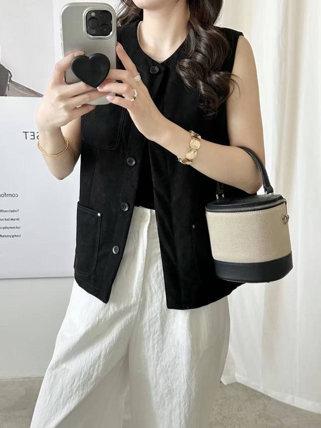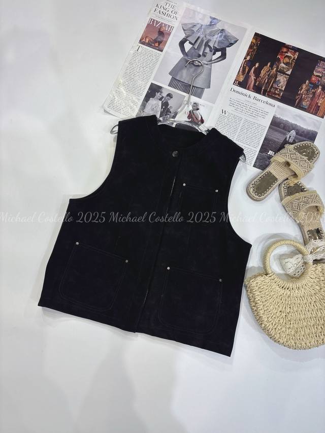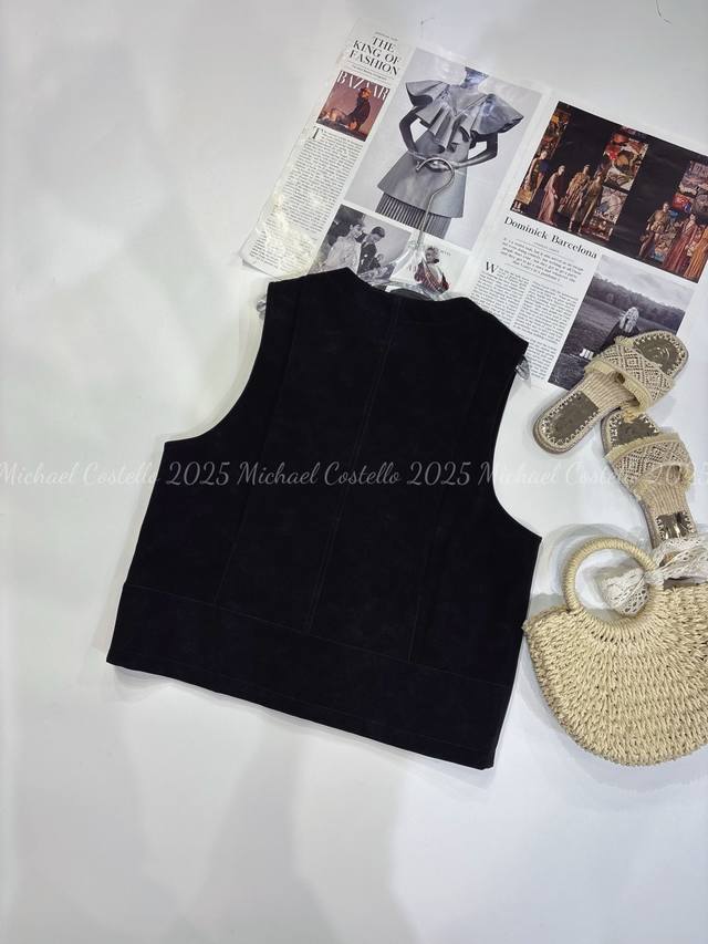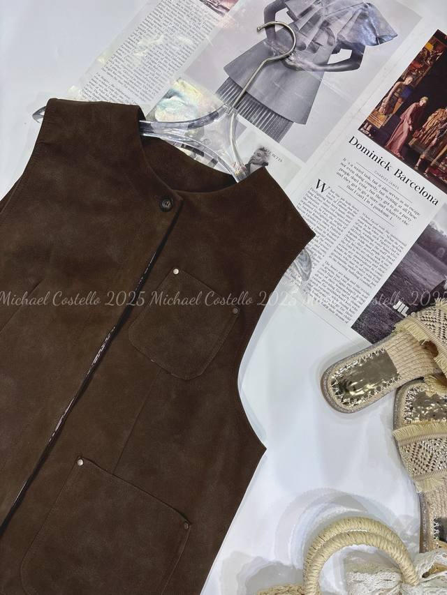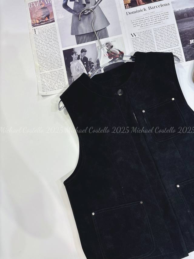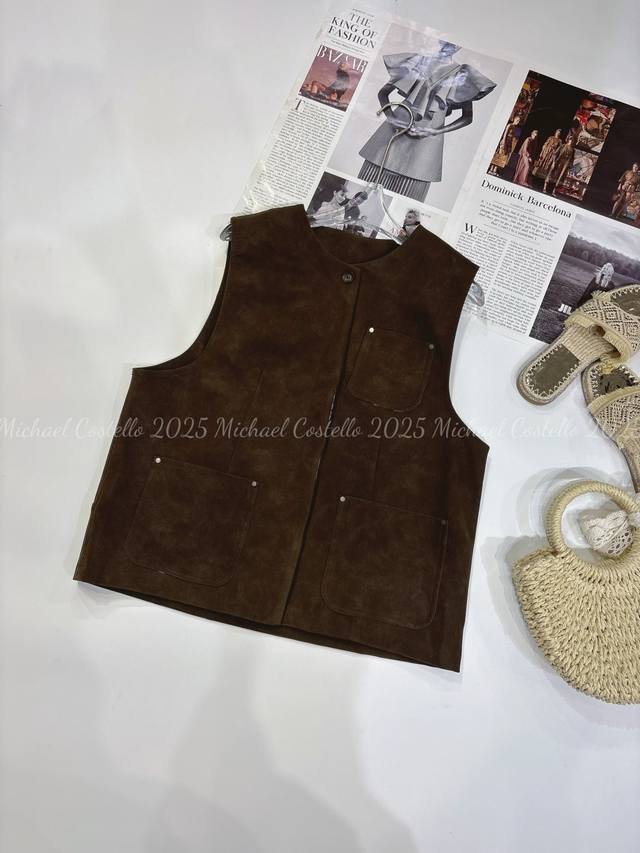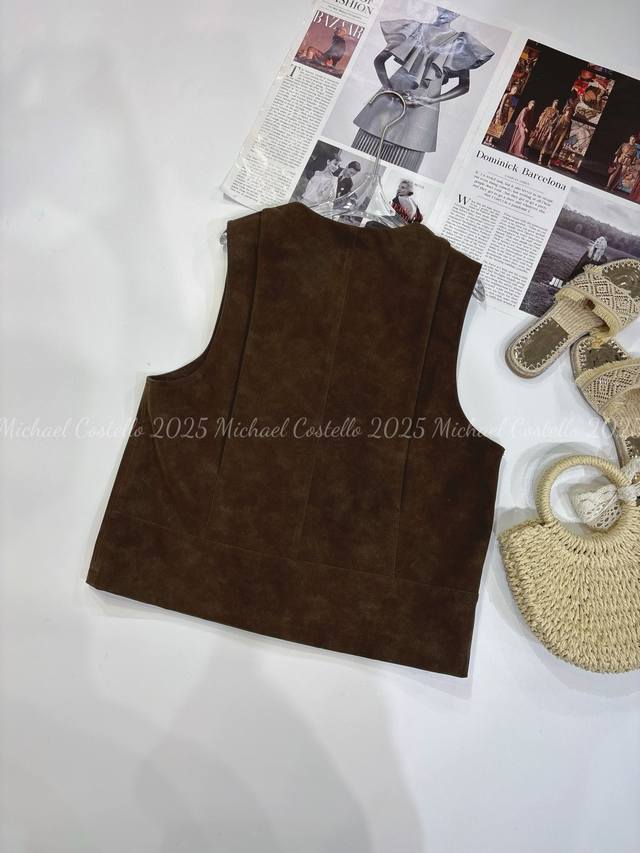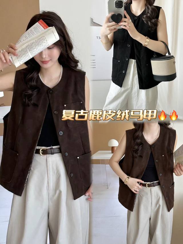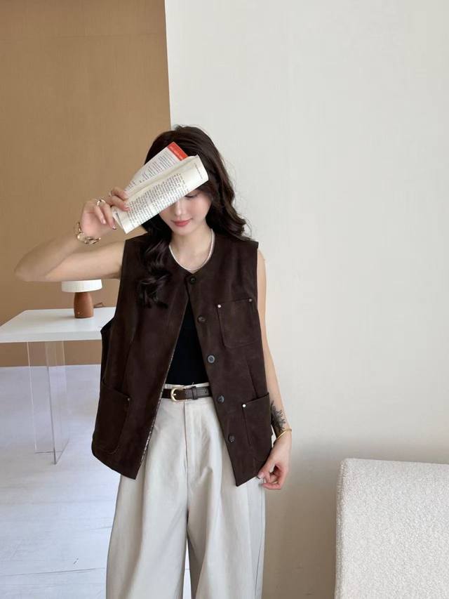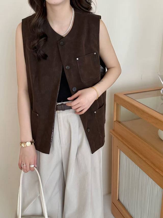 Retro and elegant deerskin vest, high-end and neat version, simple and elegant,