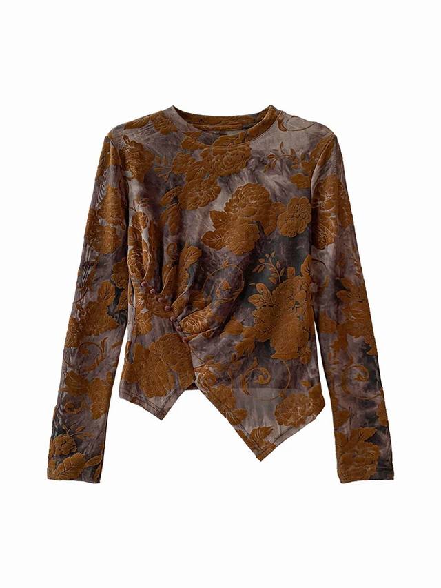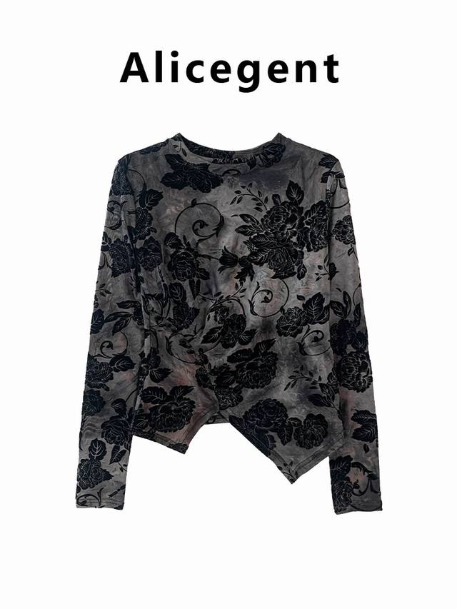 Retro high-end micro-transparent flocking bottoming shirt top 2025 new slim fit irregular small shirt one size