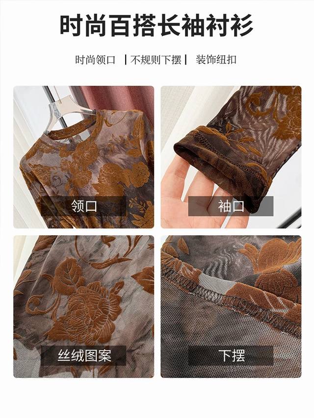 / Retro high-end micro-transparent flocking bottoming shirt top 2025 new slim fit
