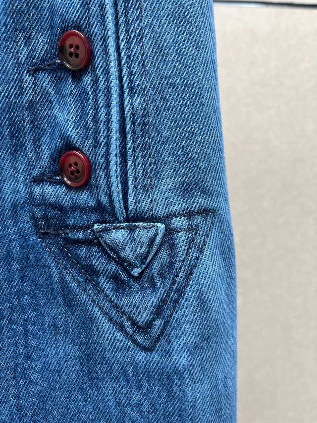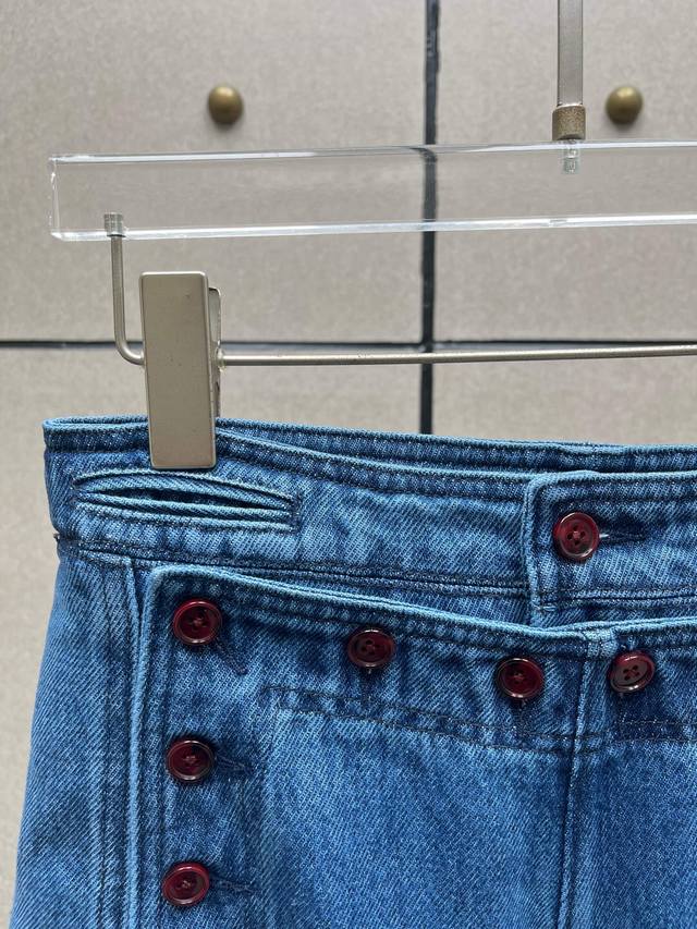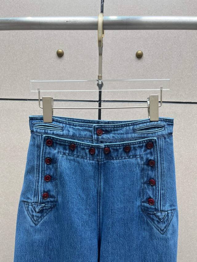 Retro high-waisted color-blocked red button jeans! Cotton Sml DDD