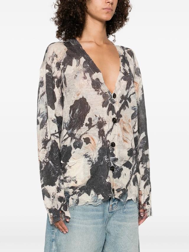 Ripped Print Linen Knit Cardigan! 100% Linen, Sizes S, M, D
