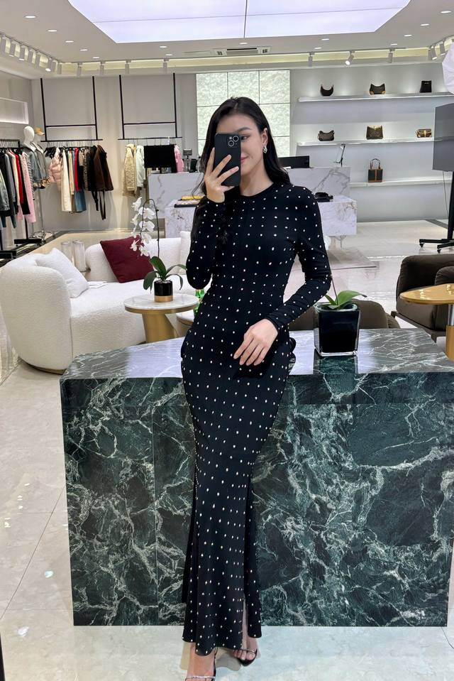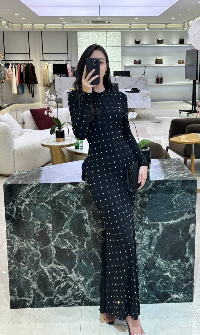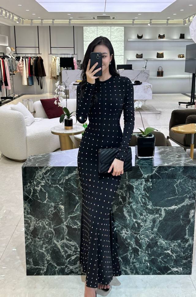 Round neck rhinestone dress! Black/Skin tone, Sizes S, M, D, D