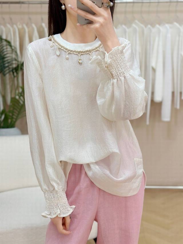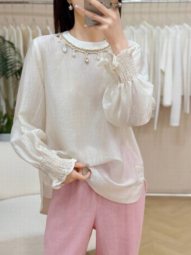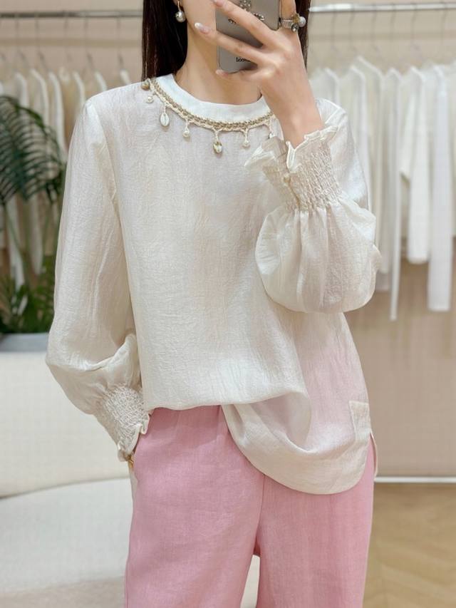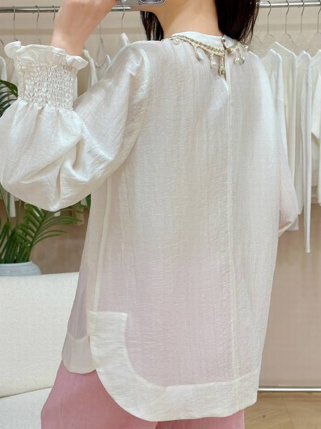 Running style acetate embroidery top