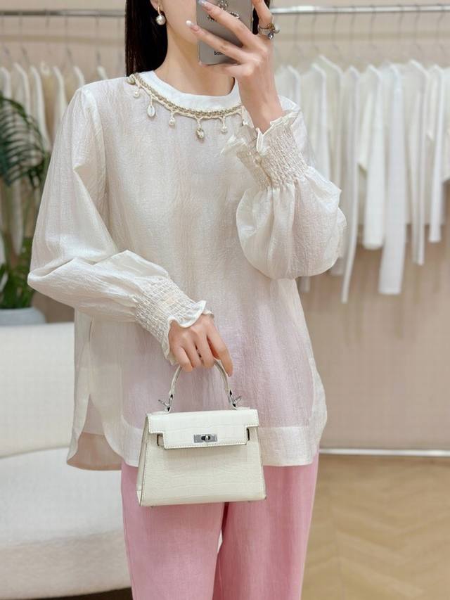 Cuffs and exquisite shell lace neckline