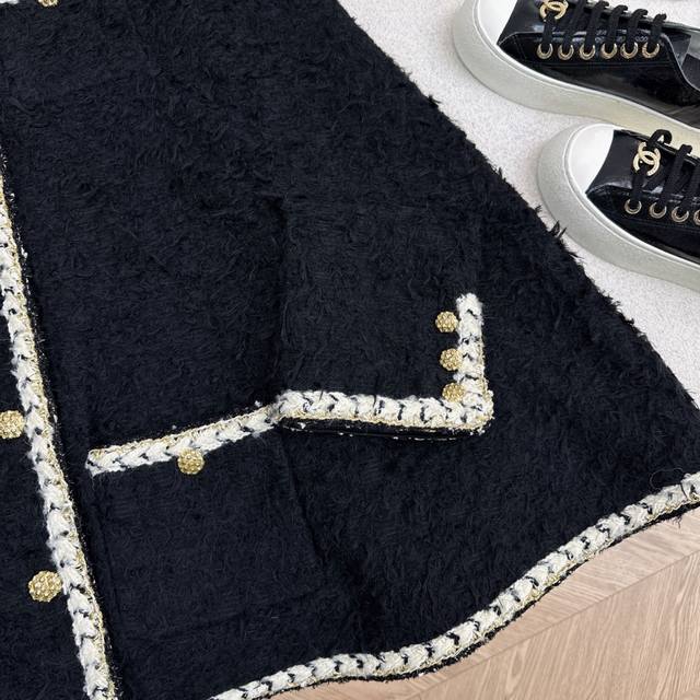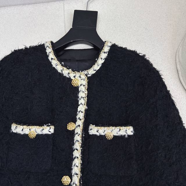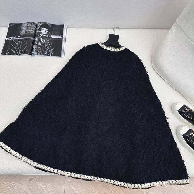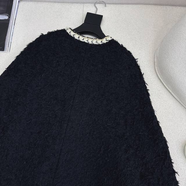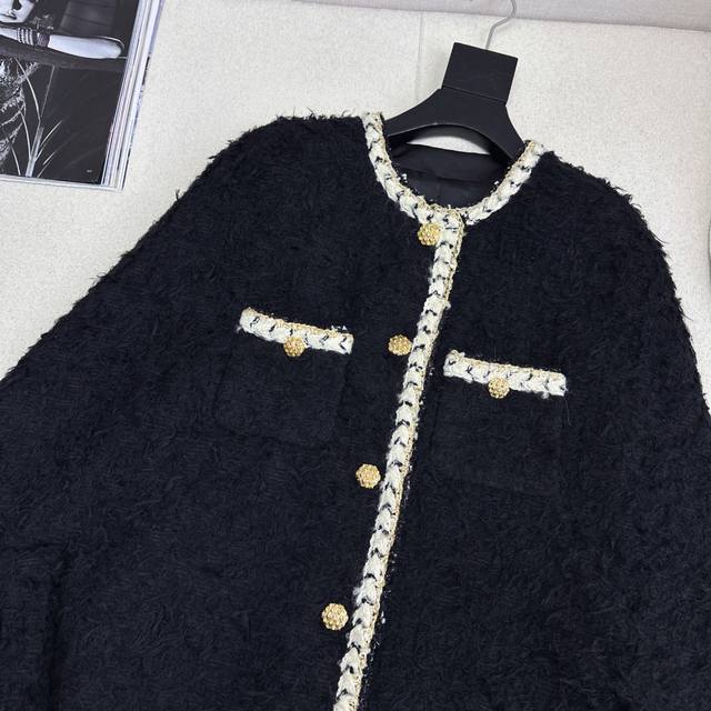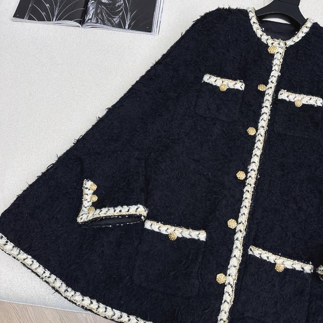 Runway style, C brand, 26Ss, early spring latest tweed cape coat. The plush tweed exudes a lazy, luxurious feel; the soft texture is like being wrapped in a cloud. The creamy white woven trim and gold buttons create a retro yet glamorous color contrast that directly appeals to the eye. The loose fit is flattering for all body types. Pair it with a dress for a dark princess look, or with jeans for a casual, sophisticated vibe. Available in all colors, sizes S, M, and L. Size S: Bust 114cm, Length 84cm. Measurements may vary slightly due to manual measurement.