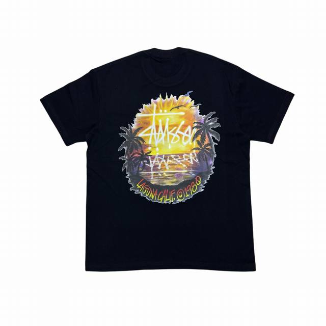 Stussy Ss24 coconut tree sunset landscape loose casual short-sleeved T-shirt for men and women
