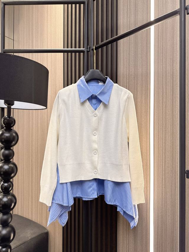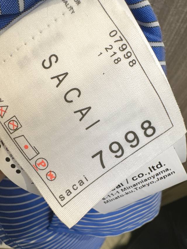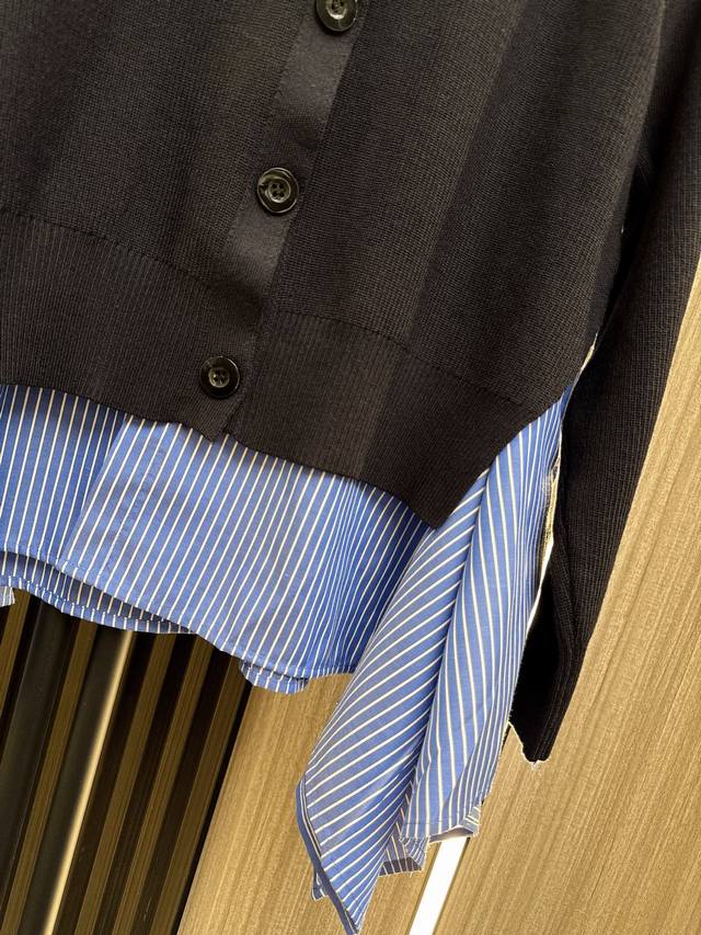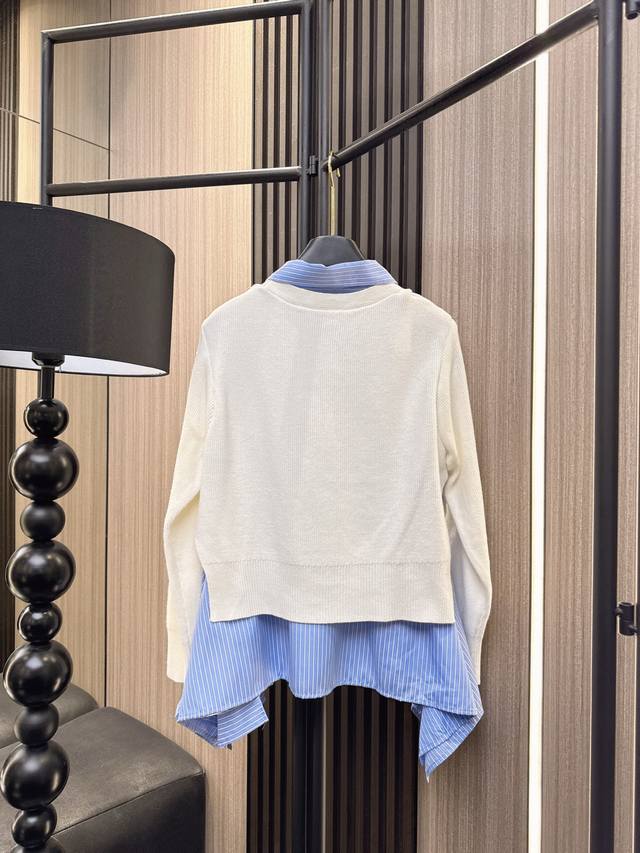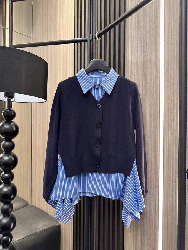 Sacai 2025 Autumn/Winter New Arrival: A groundbreaking Sacai faux two-piece top! The irregular hem and deconstructed slit design instantly transform a basic style into a runway piece. The relaxed long sleeves are flattering and slimming, while the patchwork details add a touch of sophistication. Available in sizes S, M, D, and D.