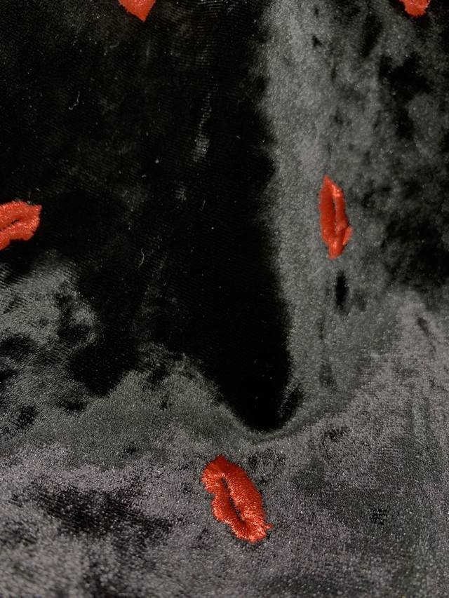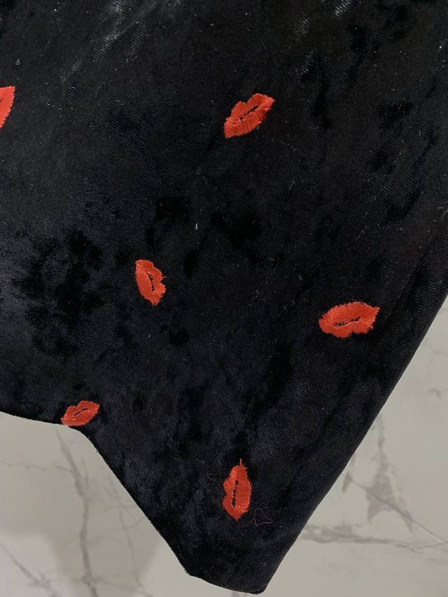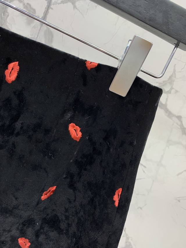 Saint Family DDD Red Lip 3D Embroidered Skirt DDD I fell in love with this red lip 3D embroidered skirt at first sight! The unique design is full of artistry, truly captivating. DDD The red lip 3D embroidery is exquisite and delicate, like wearing a painting on your body