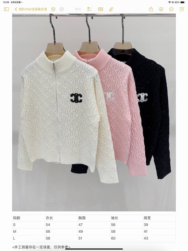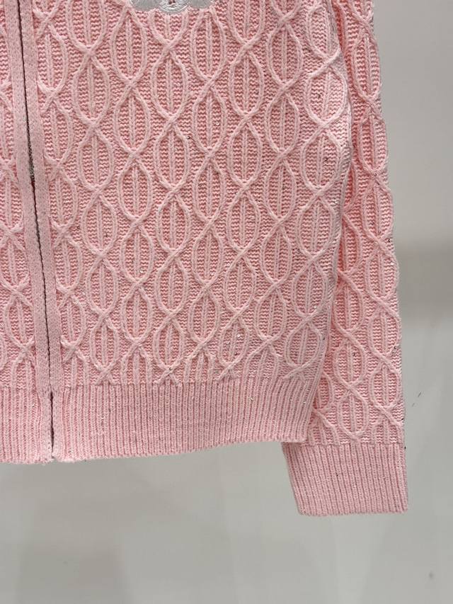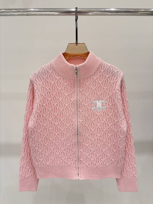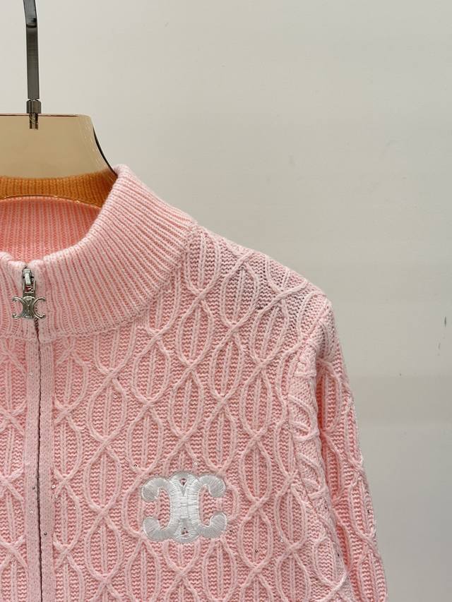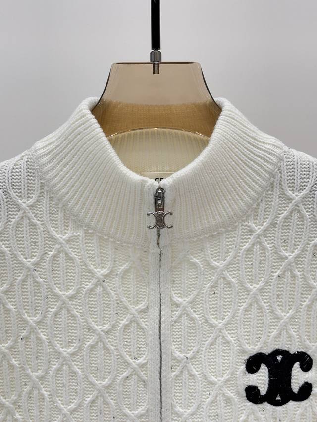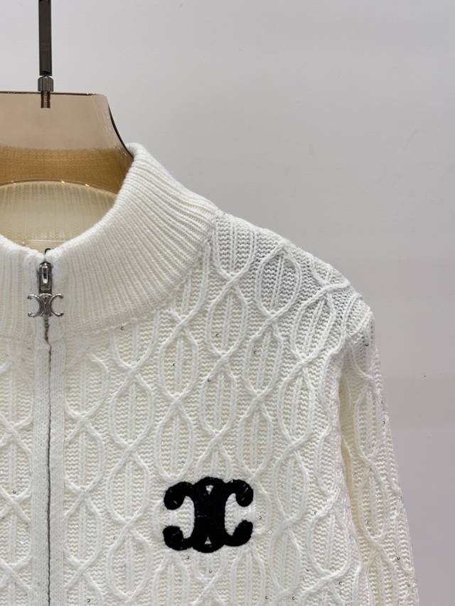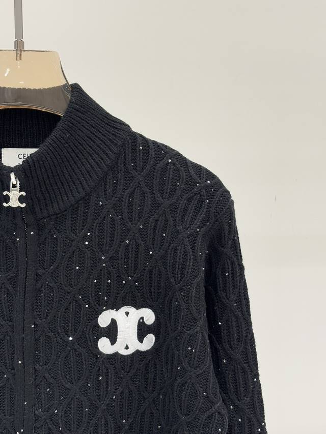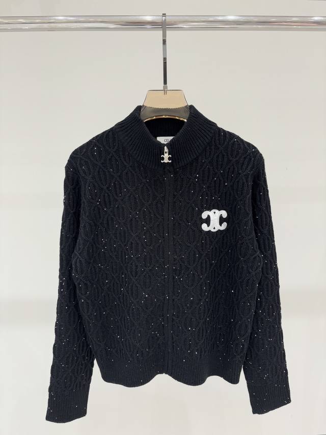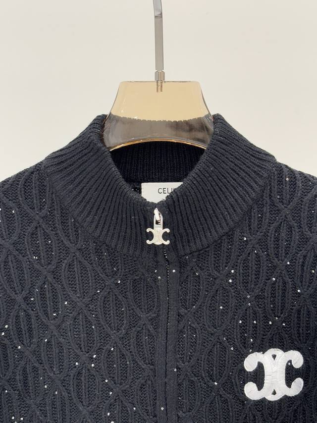 Salin Cardigan | 25 Early Autumn New Stand-up Collar Letter Logo Embroidered Jacquard Sequins Oval Three-dimensional Jacquard Simple Casual Knit Cardigan