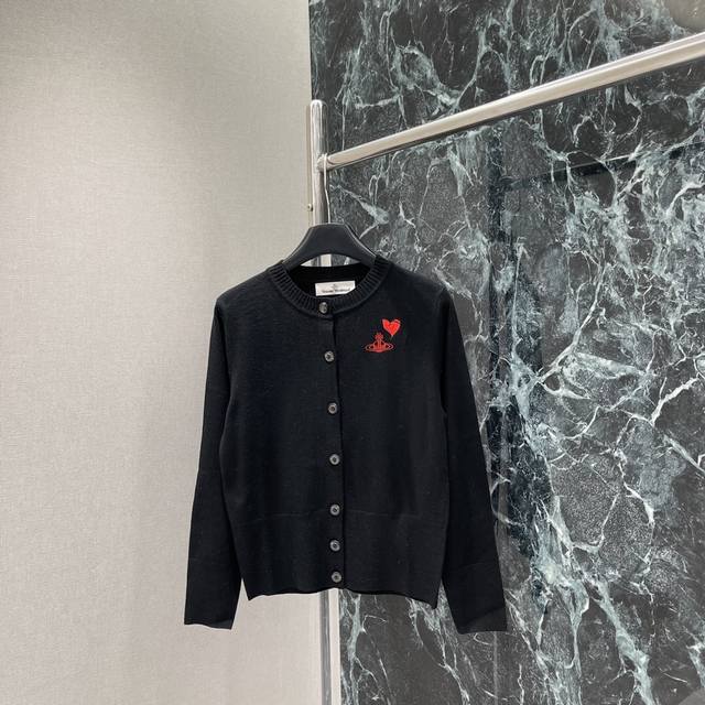 Saturn 25 Early Autumn new heart embroidered knitted cardigan has a British playful feel. Round neck, single-breasted, basic and easy to match. Black is cool and khaki is gentle, and the embroidery details are very touching. Wear it for daily outings or commuting, and it is easy to grasp the fashionable feeling. It looks good on everyone. Two colors Sml