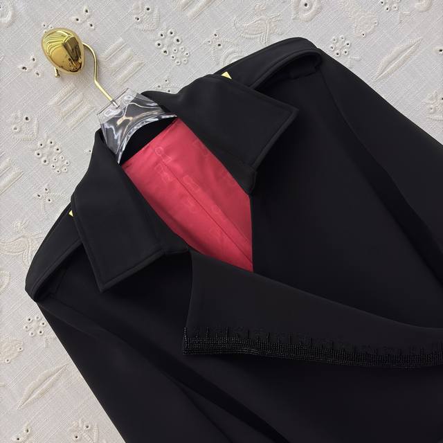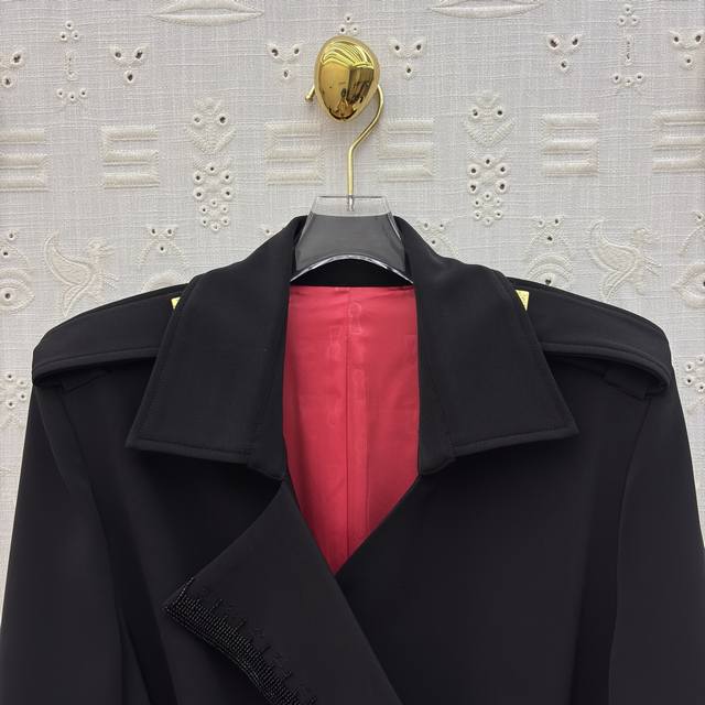Sc25 New autumn and winter style special-shaped button lapel short windbreaker jacket handmade sequin size pattern decoration fashionable and elegant mid-length design with a belt to show the waist and upper body lengthening the body proportions, making it look taller. Drop shoulder lapel short design conceals flesh and lengthens the body proportions. The version is super age-reducing and fashionable. It matches various items and has a fashionable temperament. Sml