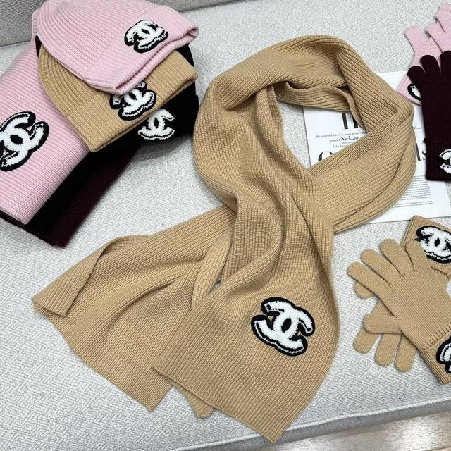 Original quality, exclusive first release of Coco Girl's 25A high-end handmade workshop series new winter matching artifact scarf, beanie, and gloves cold three-piece set | Exclusive Yb development! High-quality products! Custom-dyed cashmere material, soft and comfortable, pure hand-crocheted logo, three-dimensional exquisite super heavy-duty high gram super versatile daily wear after matching very fashionable and eye-catching. The classic style that always sells out in winter is simple this time with the classic logo. Stylish and warm winter must-have items are now on sale, three colors