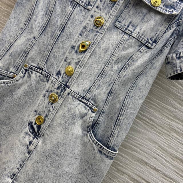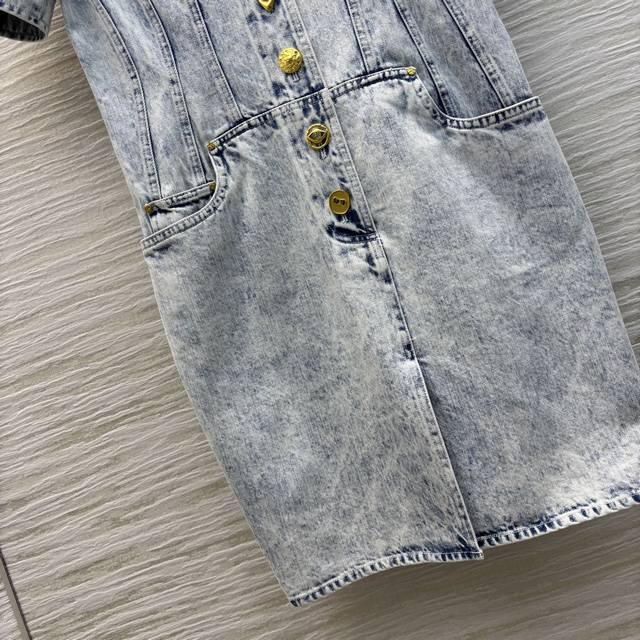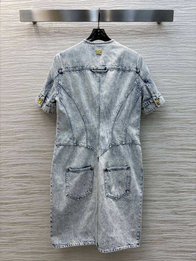 Sch's 2025 New Lock Tag Button Snowflake Denim Dress - Chic and stylish. The snowflake denim wash gives it a cool and edgy feel. The slim-fit, three-dimensional cut automatically makes you look slimmer, with a great waist-cinching and hip-hugging effect. The dress features various unique button details, each one different, adding a touch of effortless style. It's a versatile piece that goes with everything. (Same color)