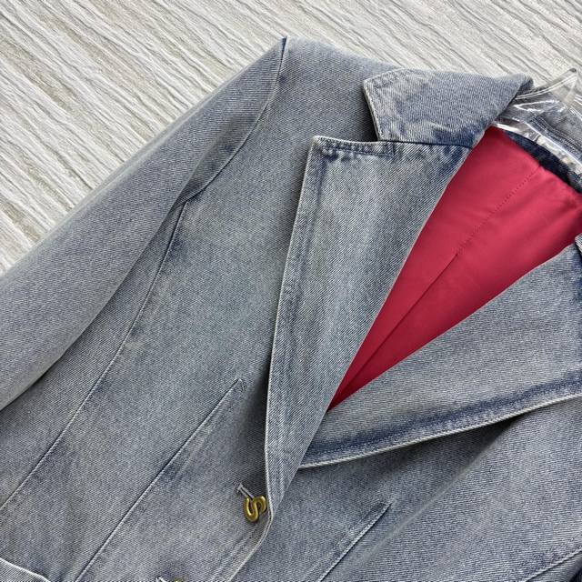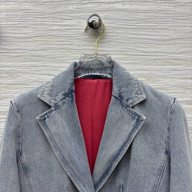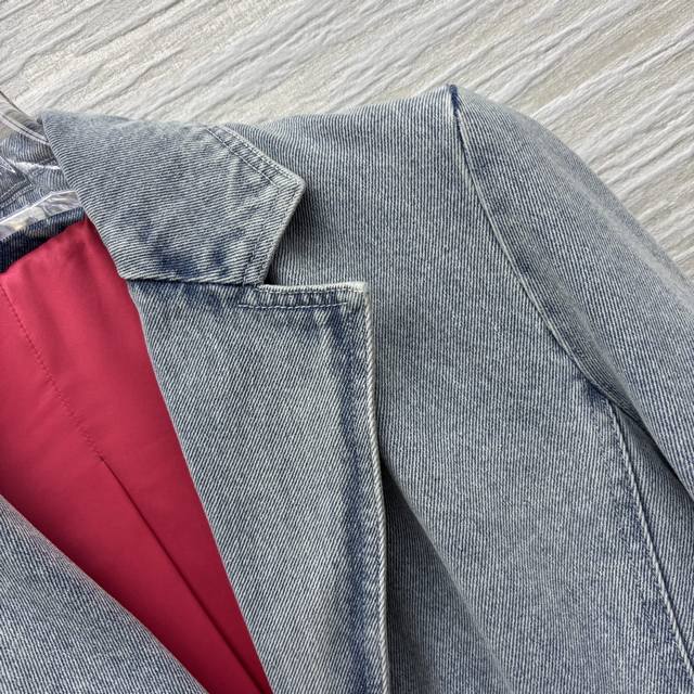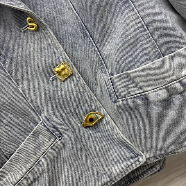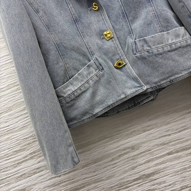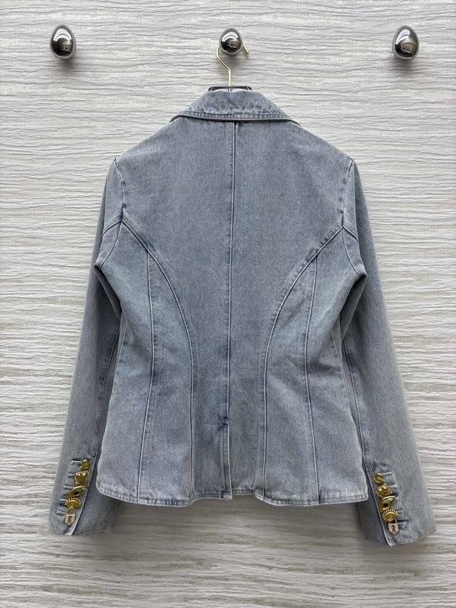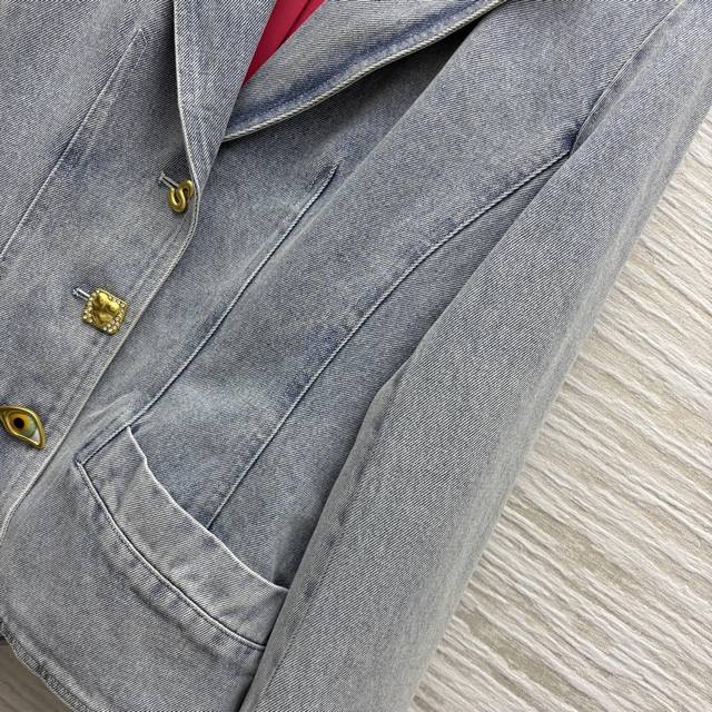 Sch's 2025 New Style Irregular Button Lapel Denim Suit Jacket - Mold-made with uniquely shaped buttons, each button is different. The lapel suit jacket design is ingenious, making the denim more distinctive. The meticulous attention to detail showcases exquisite taste. It is particularly slimming and accentuates the body proportions, making it both high-end and fashionable. Suitable for both casual and trendy occasions. Available in S, M, L, DDD.