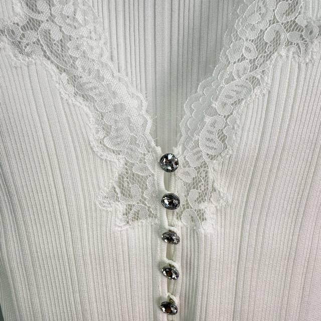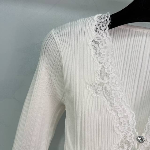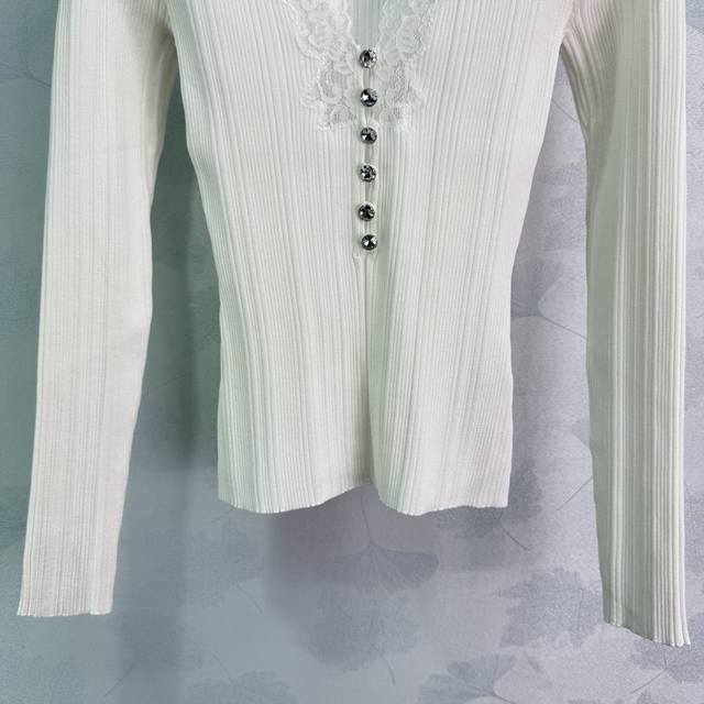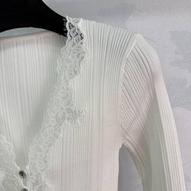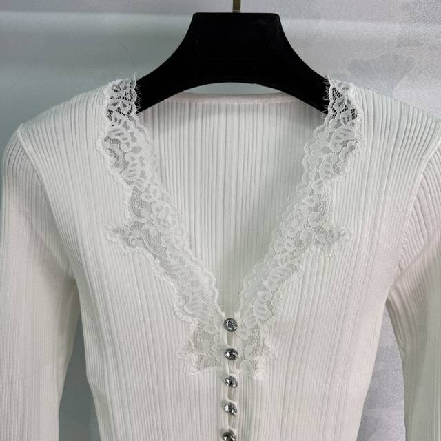 Se*2025 new V-neck lace collar paired with a custom YB wool knit. Made of soft,