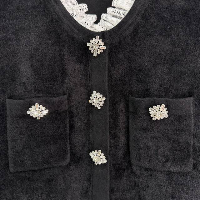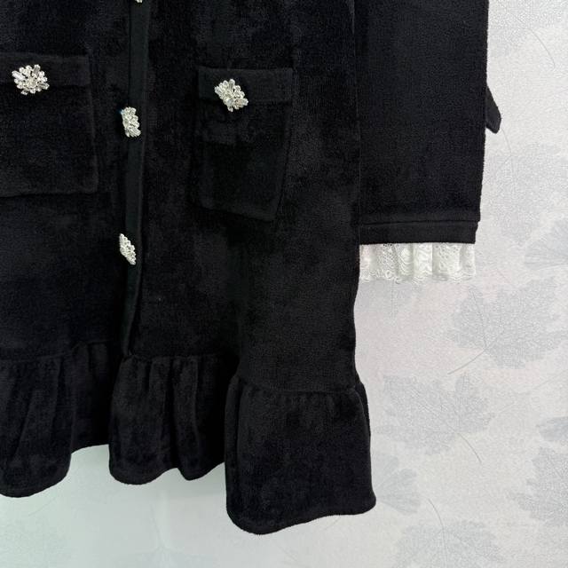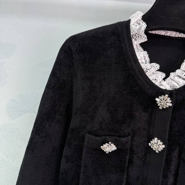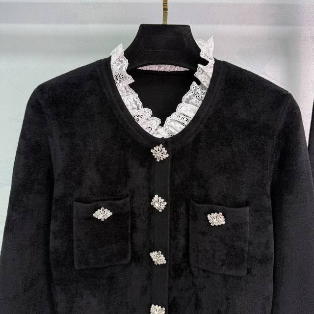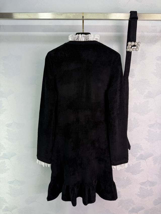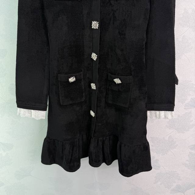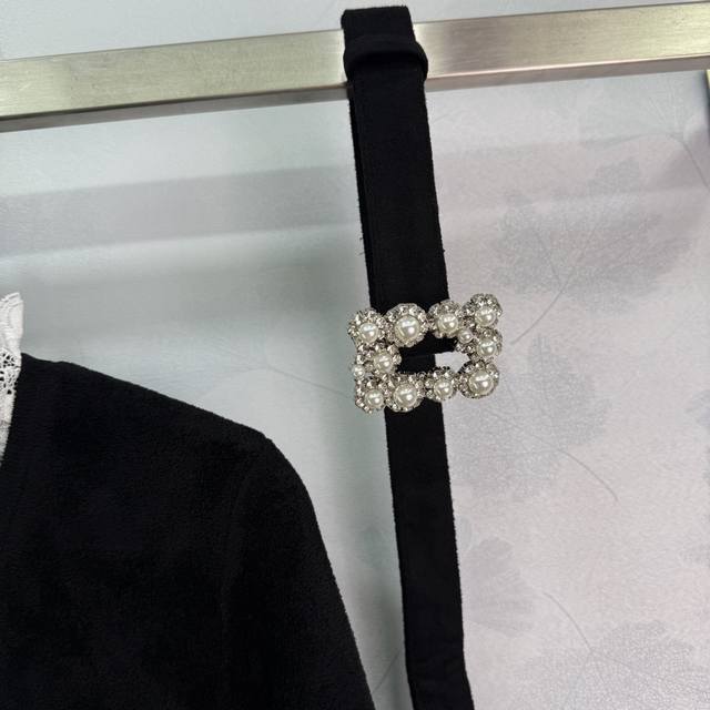 Se*2025's latest early fall French Hepburn-inspired, diamond-trimmed lace short knitted velvet dress. A socialite-inspired silhouette with a fitted waist and diamond-embellished buckle belt. This dress is both elegant and slimming, exuding a sophisticated feel. Simply stunning. Sml. T226B.