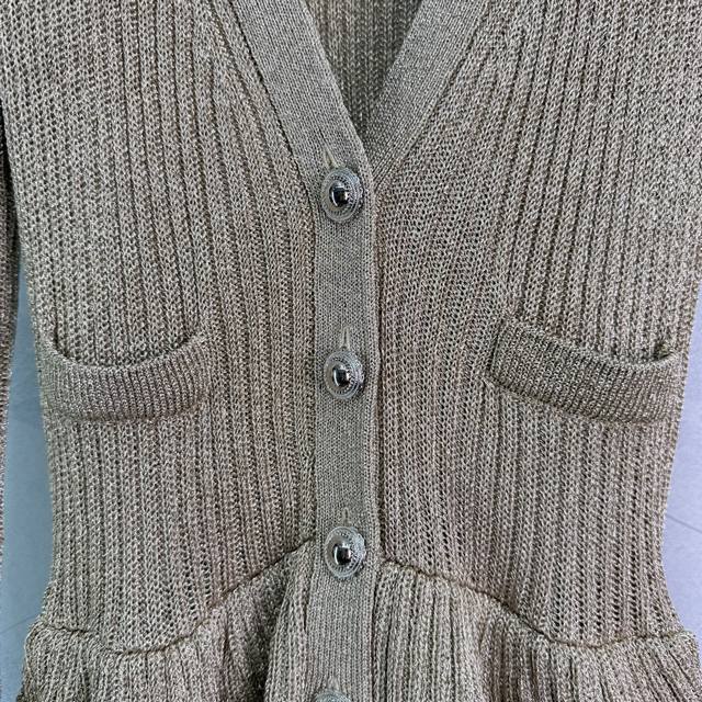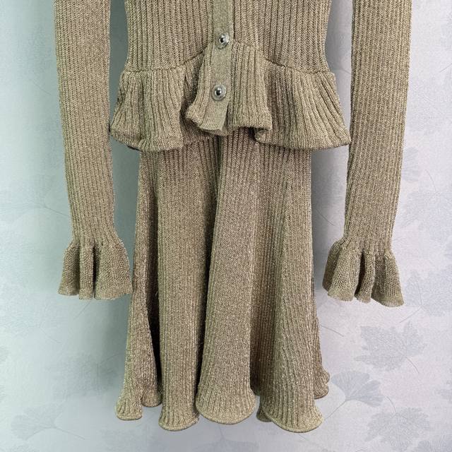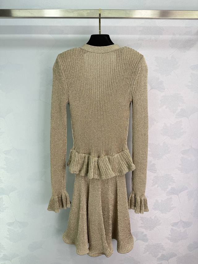 Se*25 New fall/winter gold V-neck knit dress with a faux two-piece design and ru