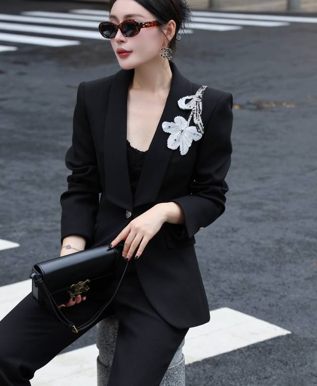 Autumn/Winter Thickened Wool Bestseller with Heavy Sequin Hand-stitched Flowers on Shoulders, Stylish, Simple, and Elegant Smlxl