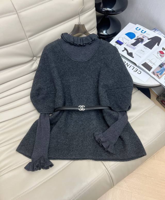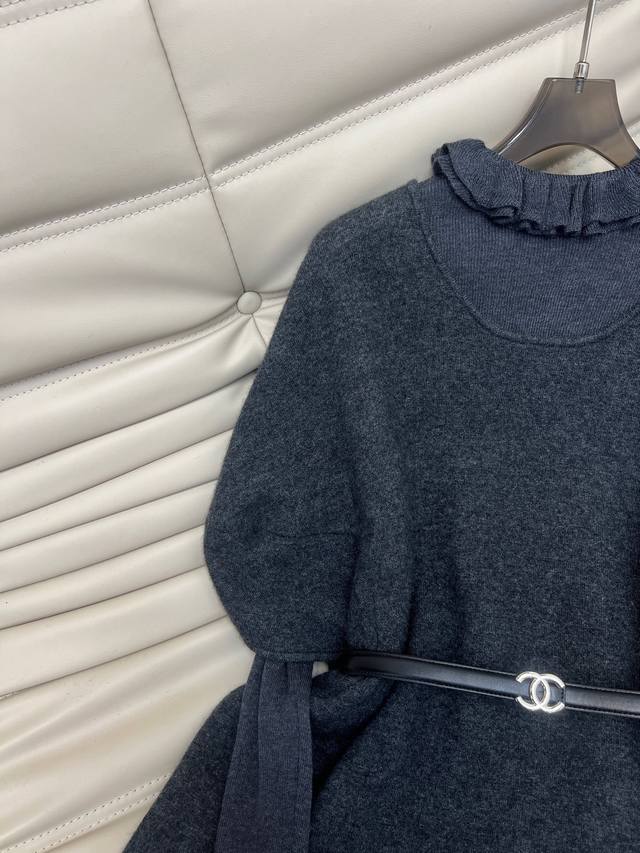 2620 Autumn/Winter Newest Wool Set Now Available! Base Layer Top Round Neck Lantern Sleeve Loose Fit Long Slit Skirt Three-Piece Set with Ruffled Collar Design Special Style Korean Sweet Style Paired with Chanel Belt for a Slimming Effect In Stock, Can Be Ordered Separately in 3 Colors S, M, L.