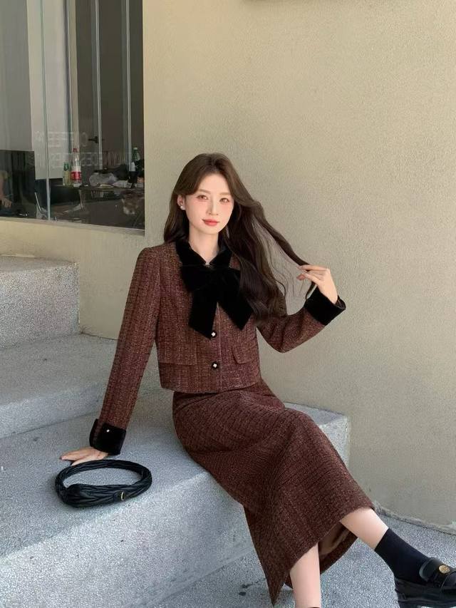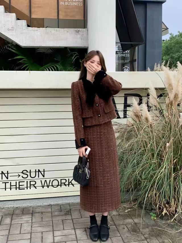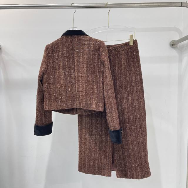 's new Chanel-style set, slim fit for a flattering and elegant look, suitable for pairing with various outfits. Available in S, M , L, XL .