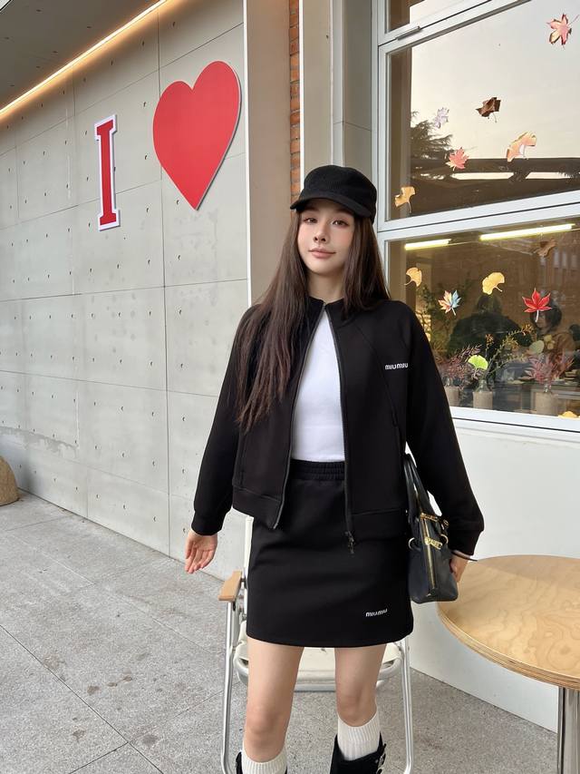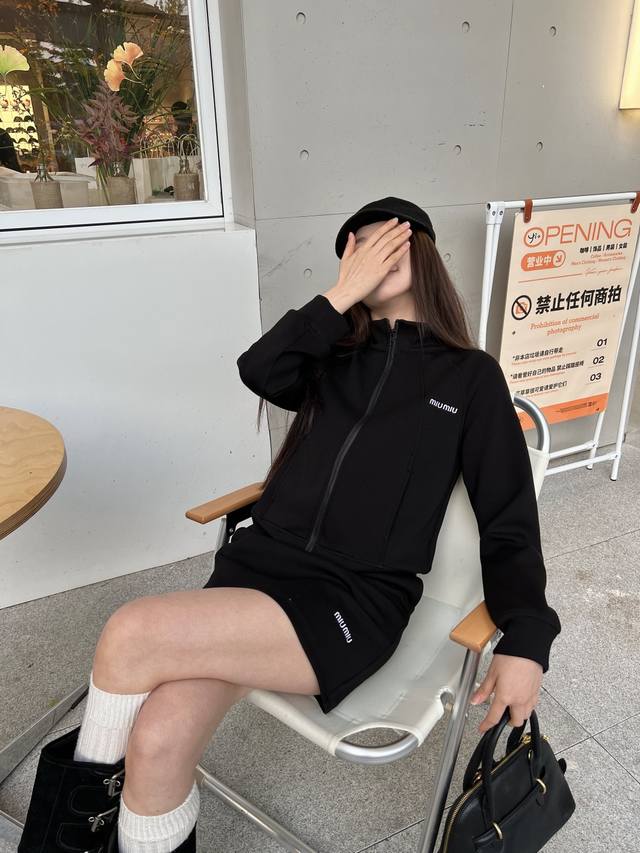 New Miu Miu Fashion Sweatshirt Jacket and Skirt Set, High Quality, Reliable Recommendation, Classic, Simple, Stylish, and Youthful, Comfortable and Flattering for All Body Types, Looks Beautiful on! A Hot Selling Item, Available in Two Colors: S, M, L, XL