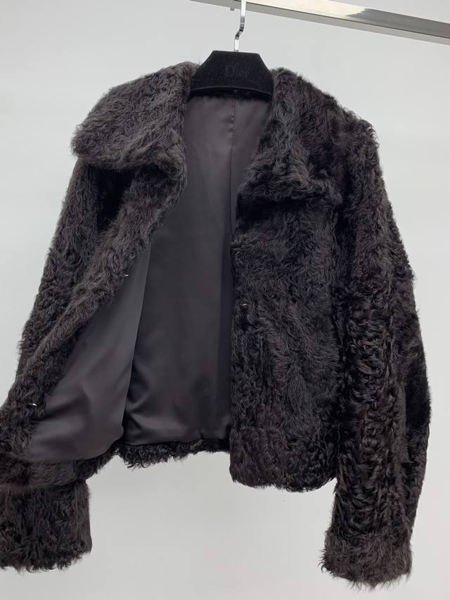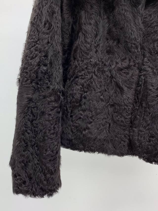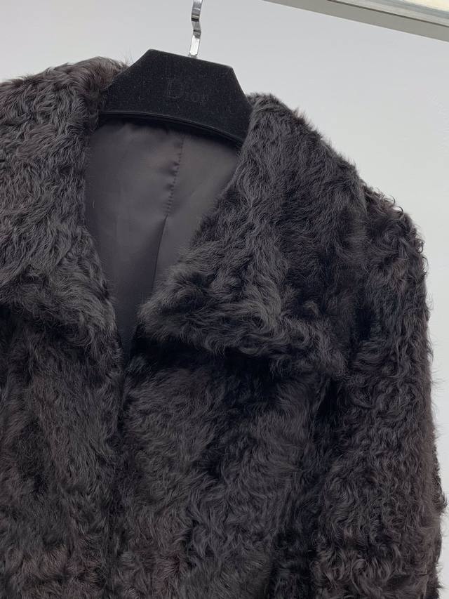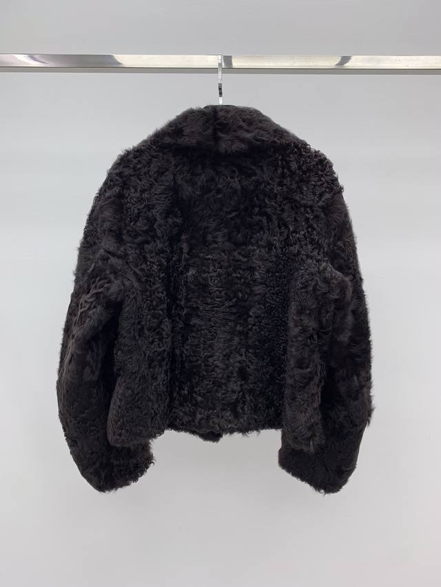 Shearling Coat with Lapel Collar. Made from imported Tuscan shearling, this coat features a flattering straight silhouette with a hook-and-eye closure. The clean lines and lightweight design flatter the shoulders, offering a sophisticated yet relaxed look. Available in sizes S, M, and L.