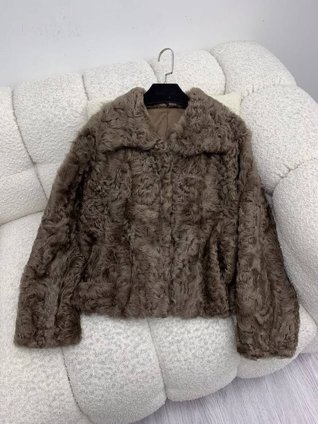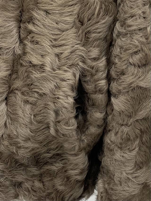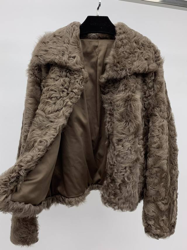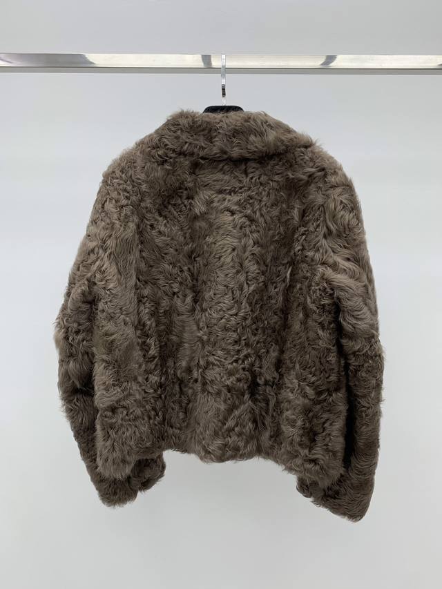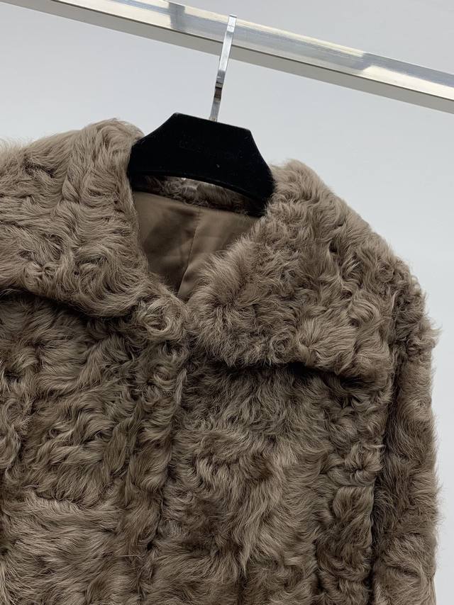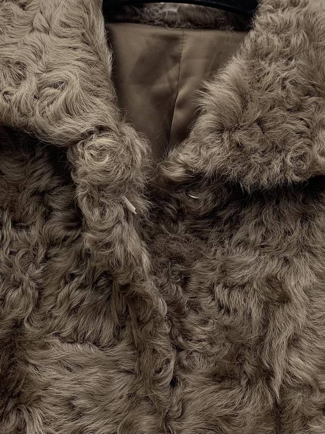 Shearling Coat with Lapel Collar Made with imported Tuscan shearling, this coat features a flattering straight silhouette with a hook-and-eye closure. It's sleek, lightweight, and comfortable. The large lapel design flatters the shoulders, offering a sophisticated yet relaxed look. Available in sizes S, M, and L.