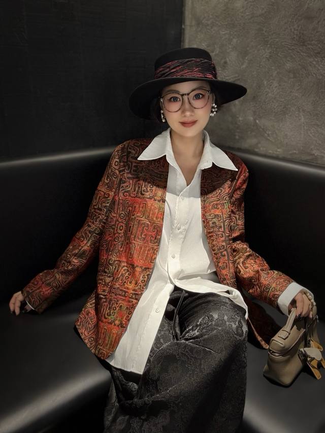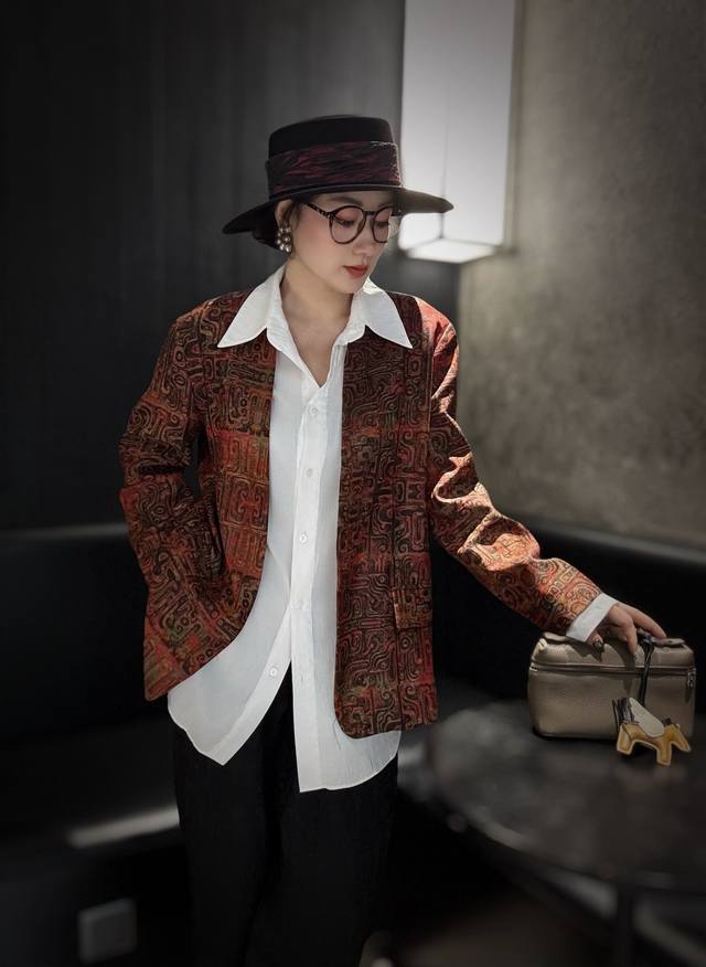 Silk shantung silk printed suit jacket with lining and pockets S Xl