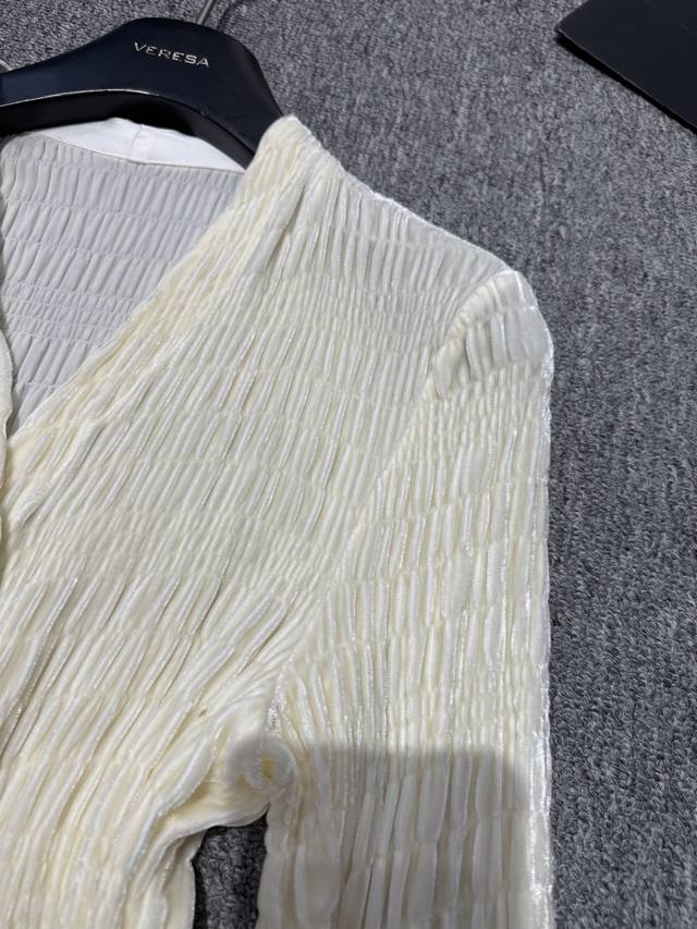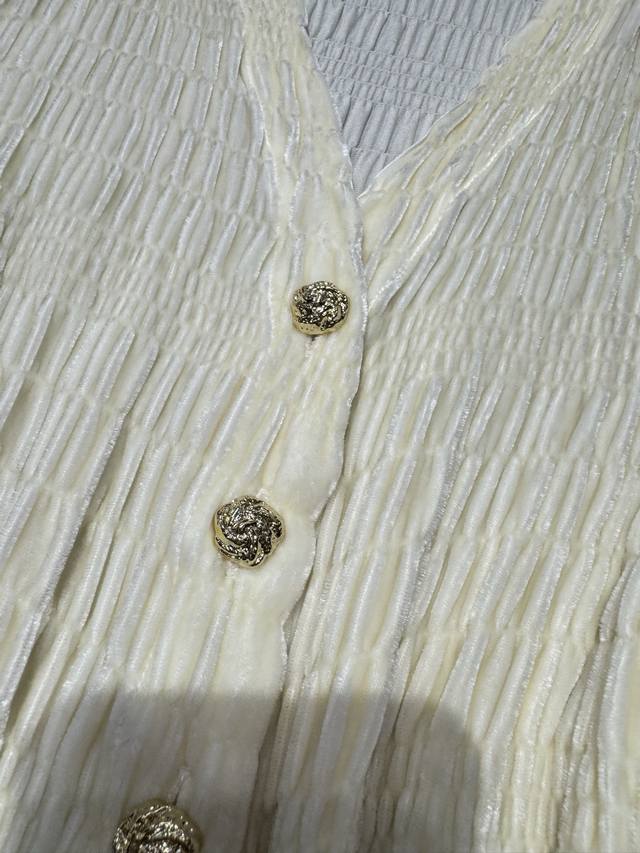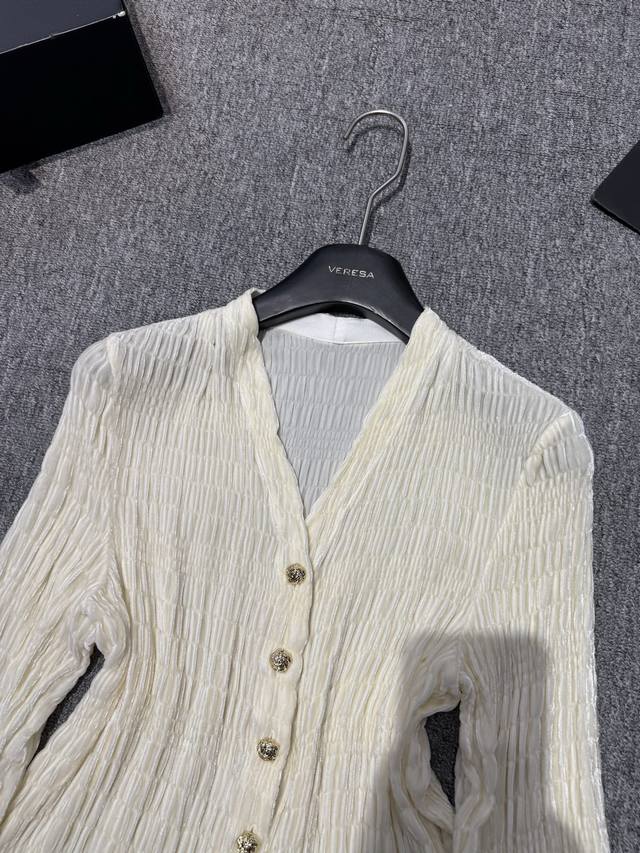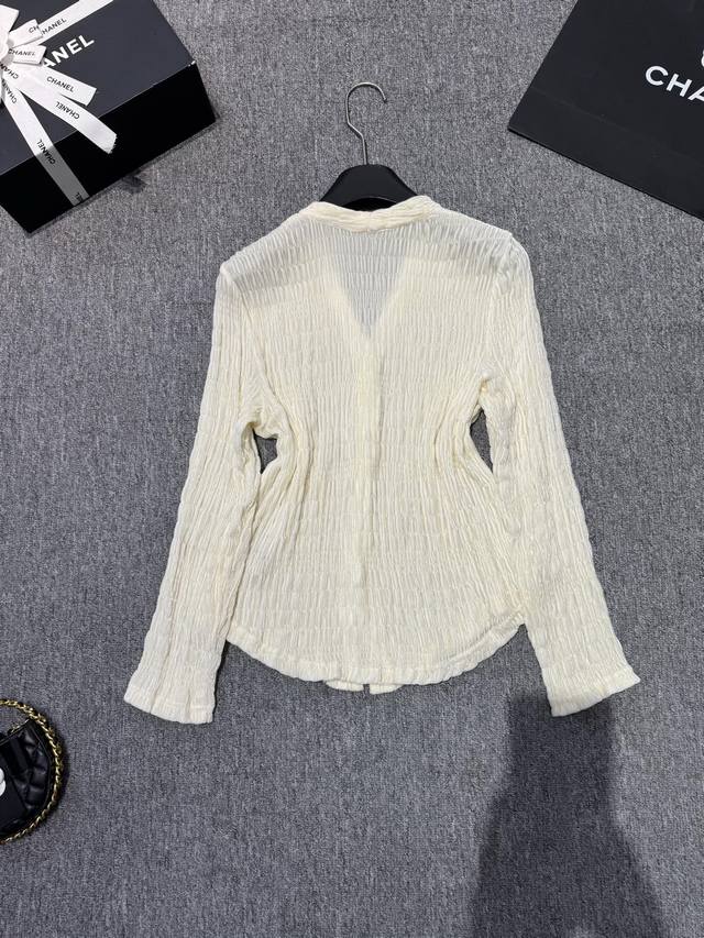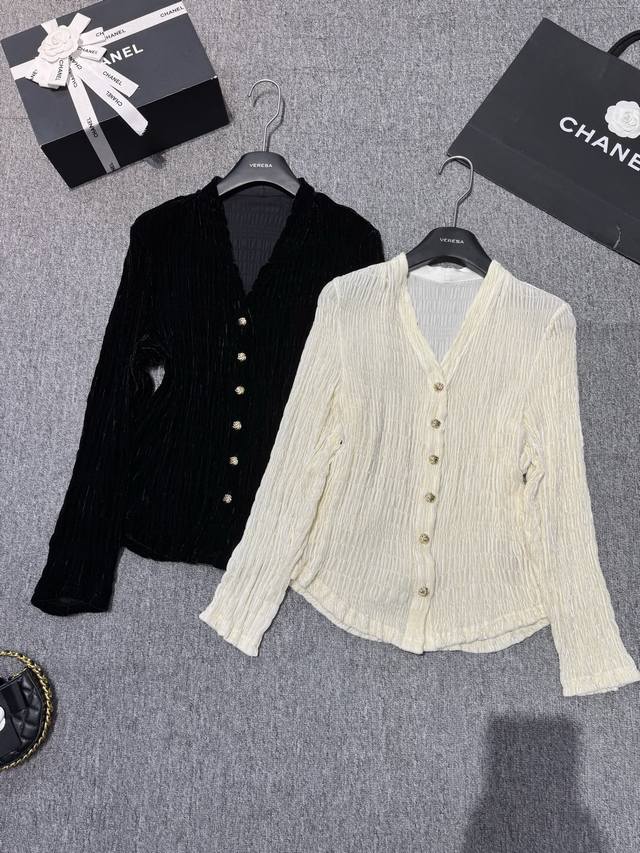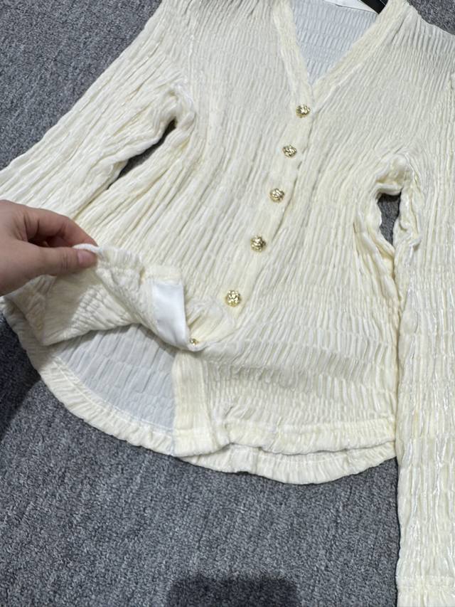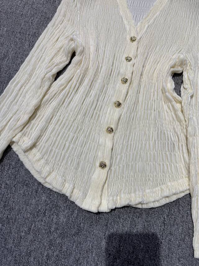This one is more versatile and fashionable~Silk velvet V-neck silver button decoration embroidered craft design temperament versatile slimming hot style blouse! Off-white