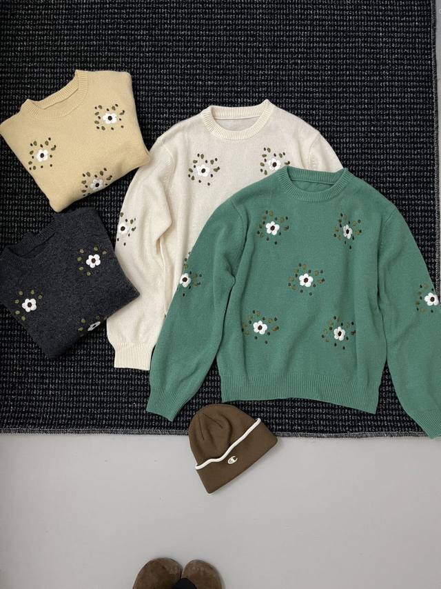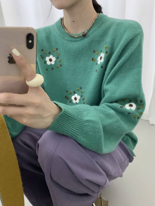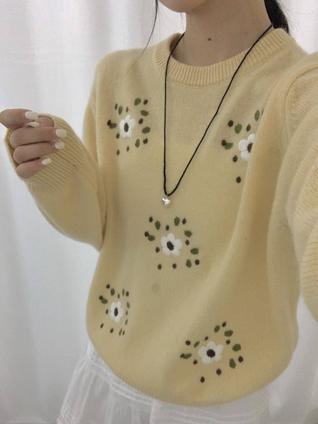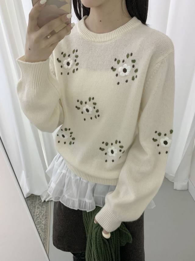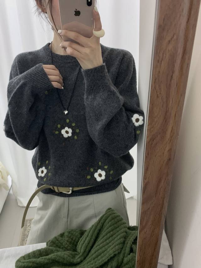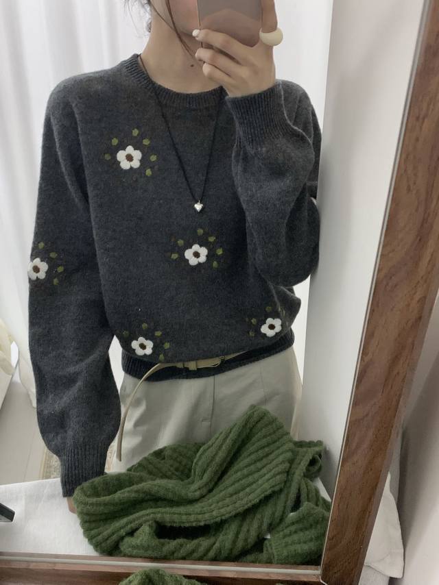 Simple, casual, stylish, and elegant European-style autumn/winter new arrival. High-count wool stripe, 100% heavy-duty embroidery, loose fit, slimming, versatile knit top. New arrival, regular price, new arrival DDD