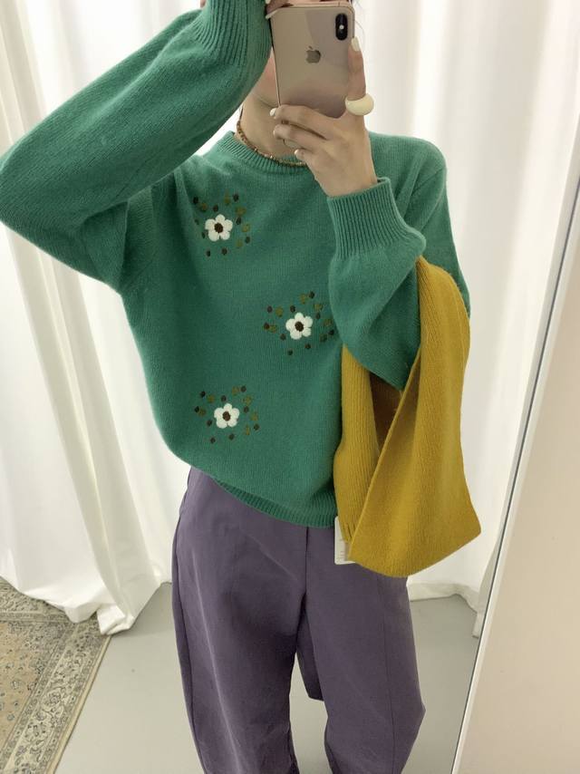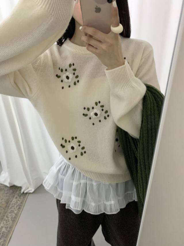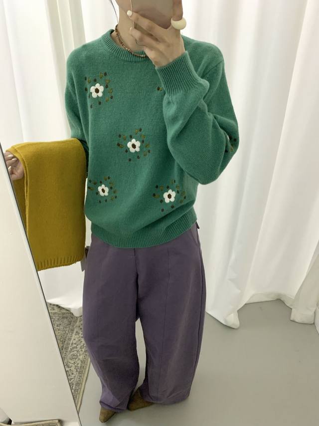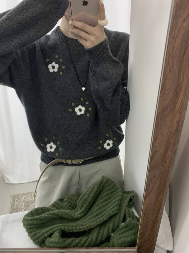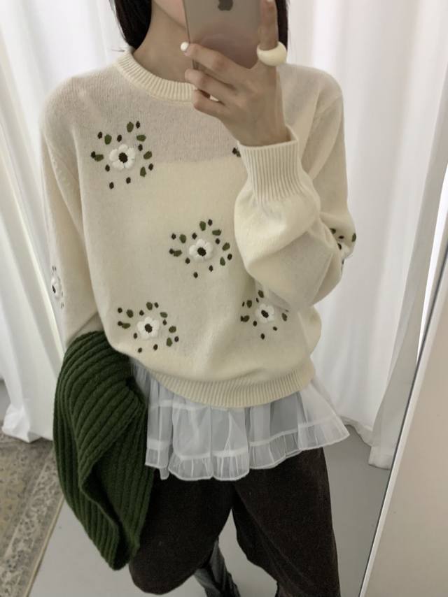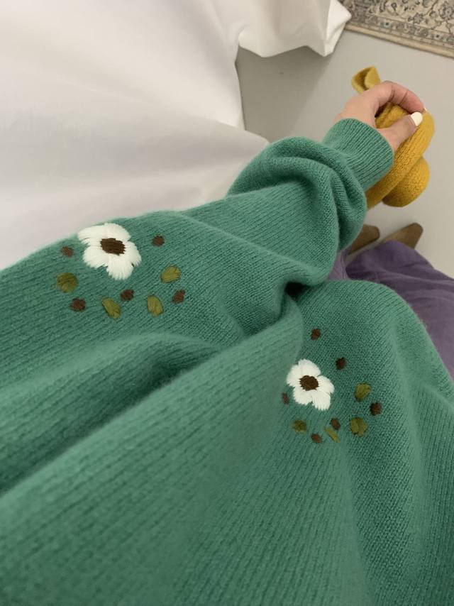 Simple, casual, stylish, and elegant European-style autumn/winter new arrival. High-count wool stripe, 100% heavy-duty embroidery, loose fit, slimming, versatile knit top. New arrival, regular price, new arrival DDD