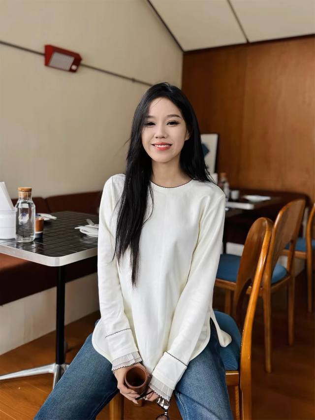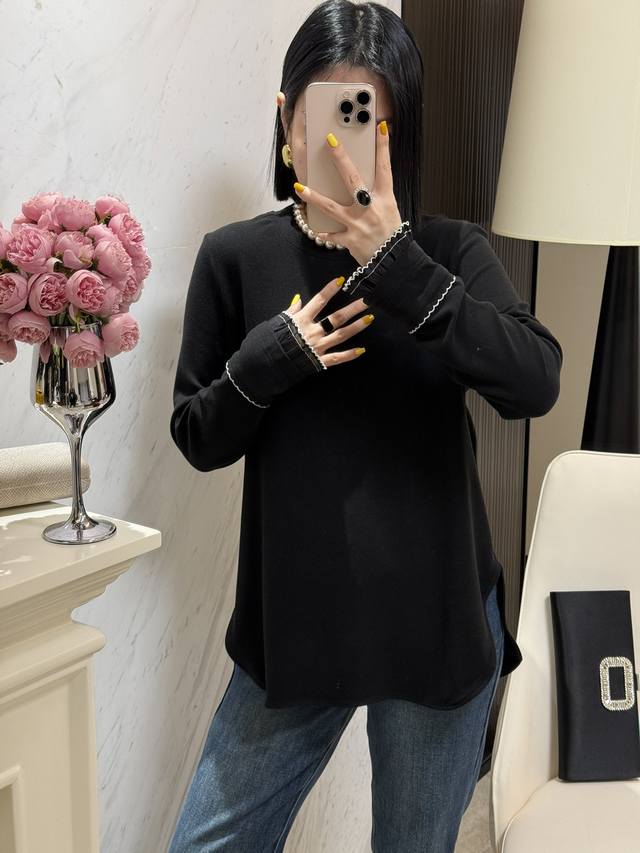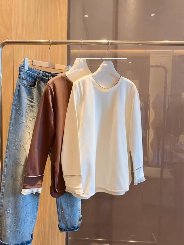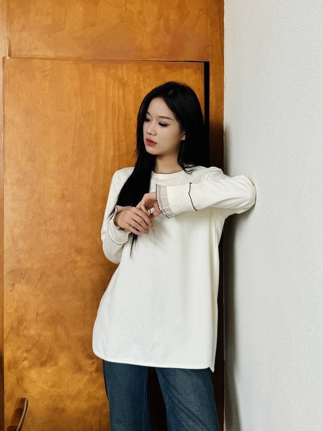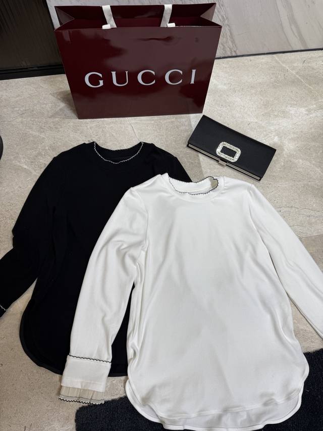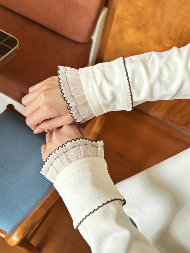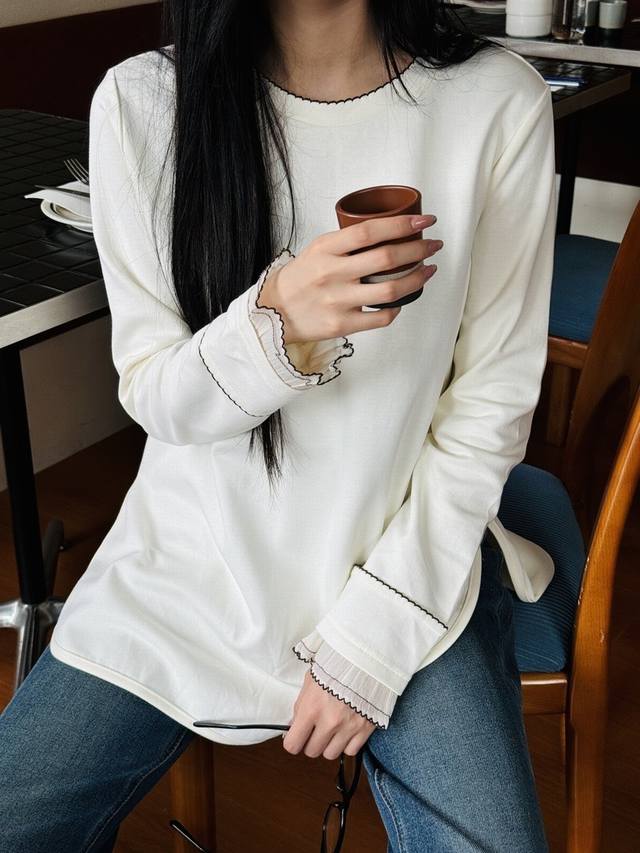 Single cuff patchwork wave edge craft long sleeve T-shirtFabric: CottonColor: O