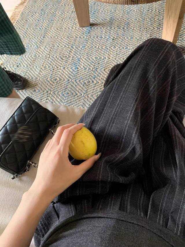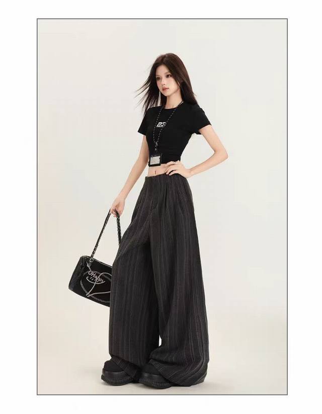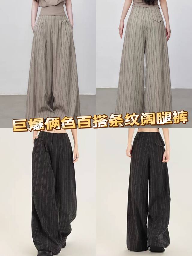Single pants Old Money cotton and linen striped wide-leg pants All-match popular wide-leg pants Old Money style striped wide-leg pants New early autumn women's loose slim casual pants, fashionable and atmospheric style, the upper body is super stylish, fabric: cotton and linen blended fabric, dark gray khaki four sizes Smlxl