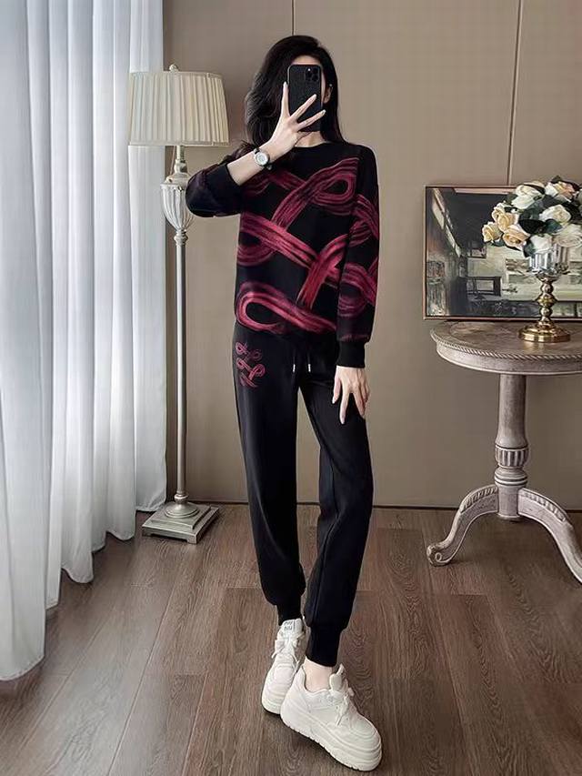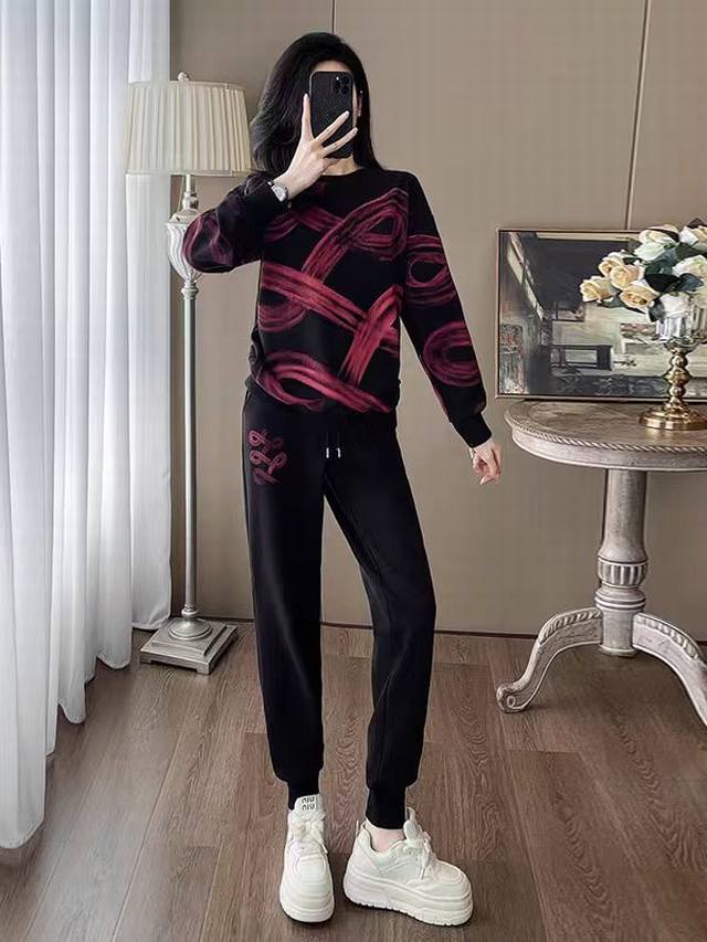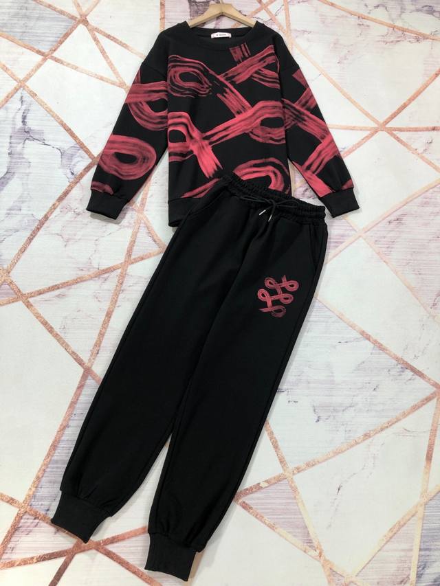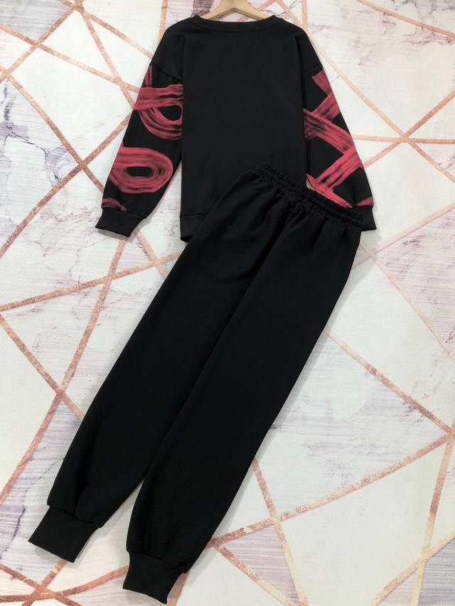 Simple contrasting color simple sweatshirt suit