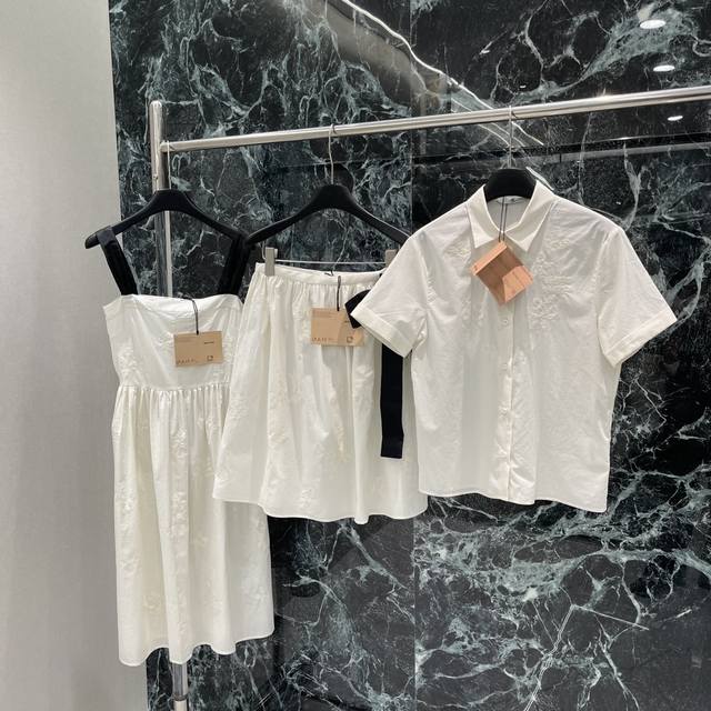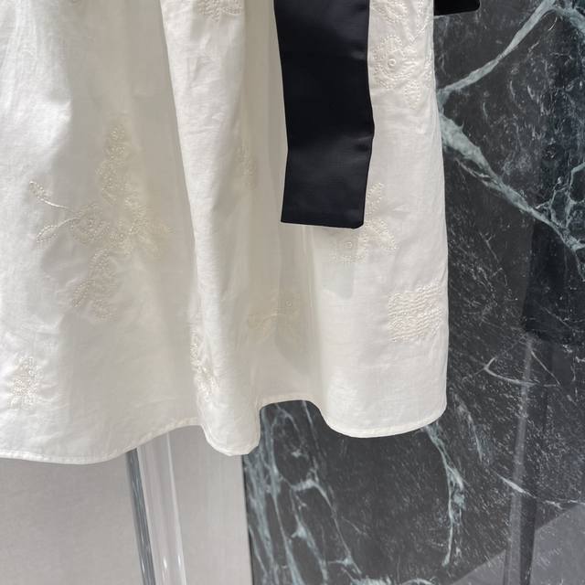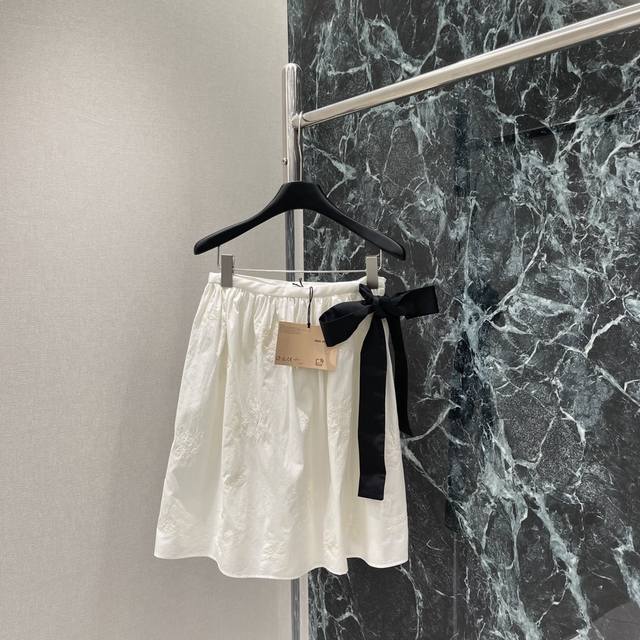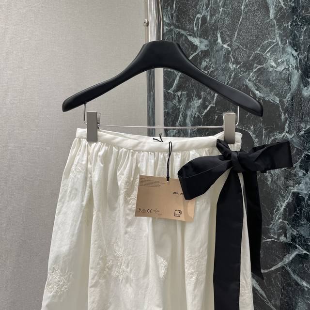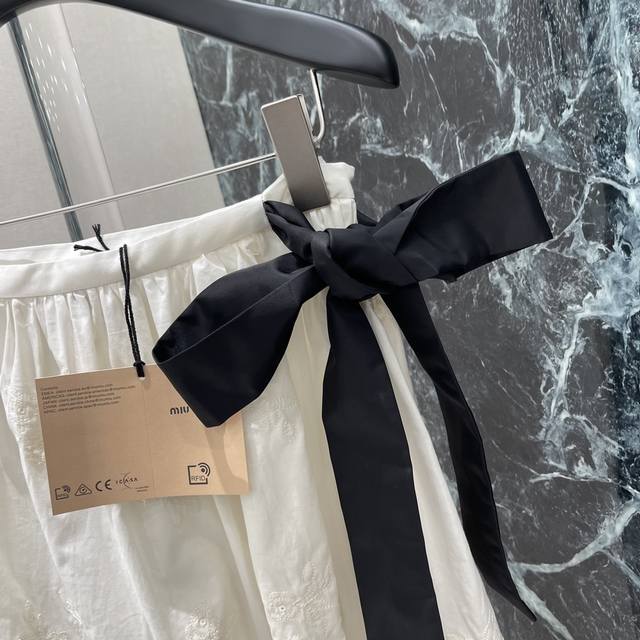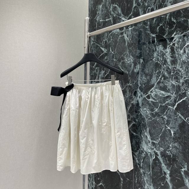 Miu 25 summer new style bow tie skirt with exquisite floral embroidery expresses the lightness of summer. It is matched with a short-sleeved shirt from the same series. It is really superb. It looks really good on the upper body and is not picky about people! One color is in stock Sml