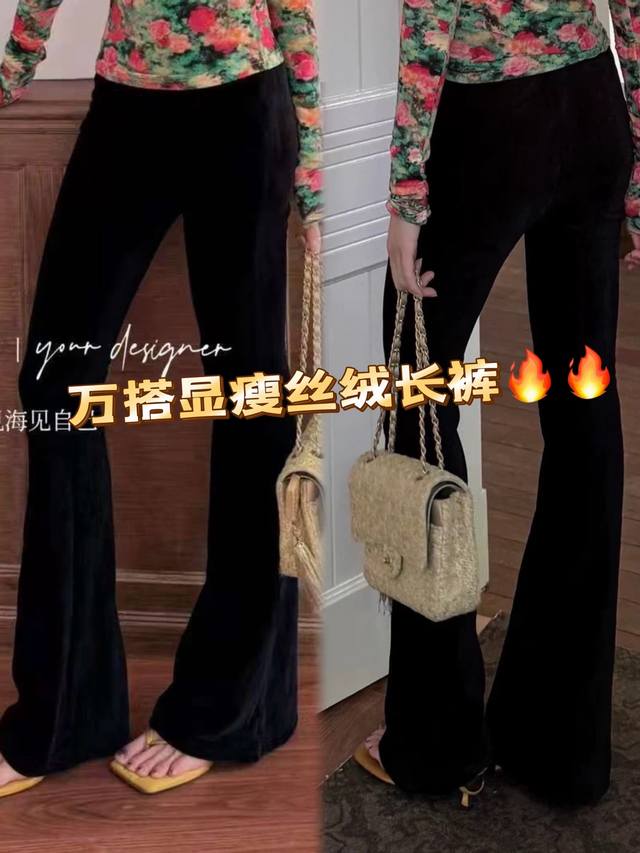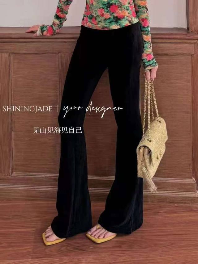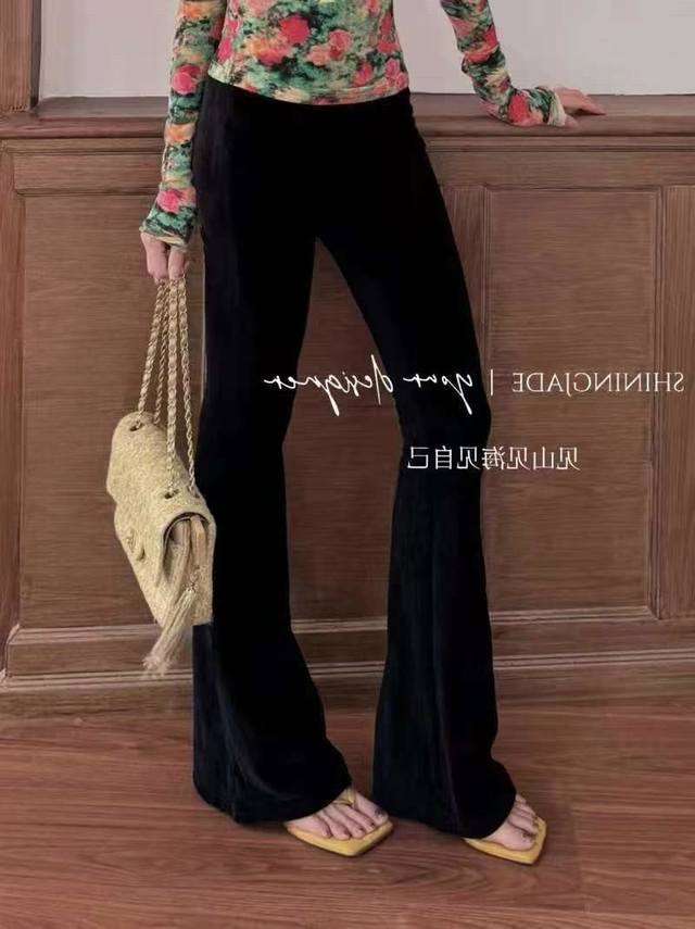 Slimming code Luxurious texture slim velvet flared pants, high waist design lengthens the leg proportion Simple straight waistband, comfortable upper body without being tight, slightly fitted flared pants easily optimize waist proportion and noble temperament Smlxl