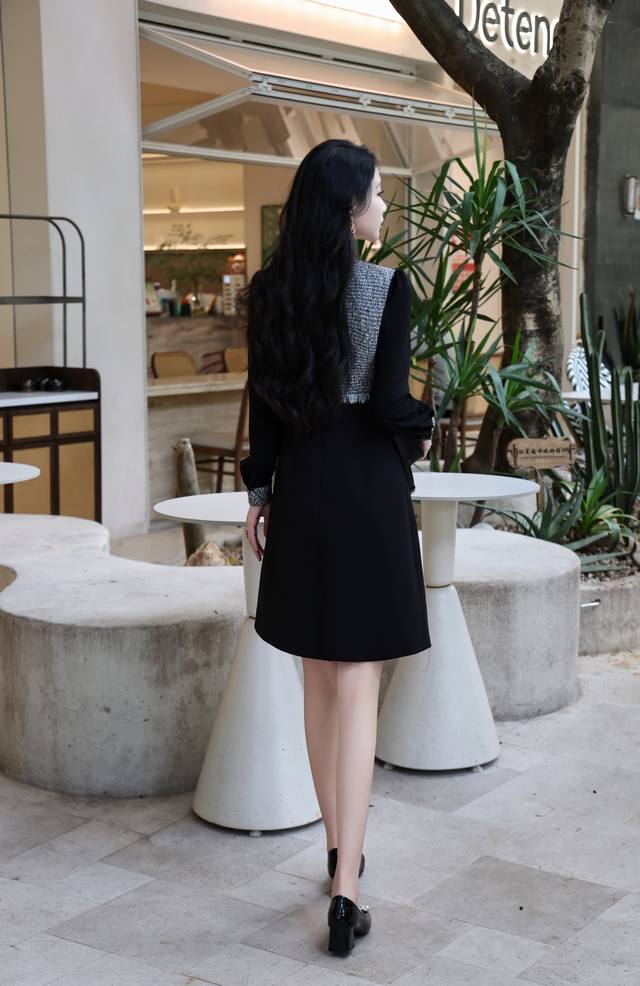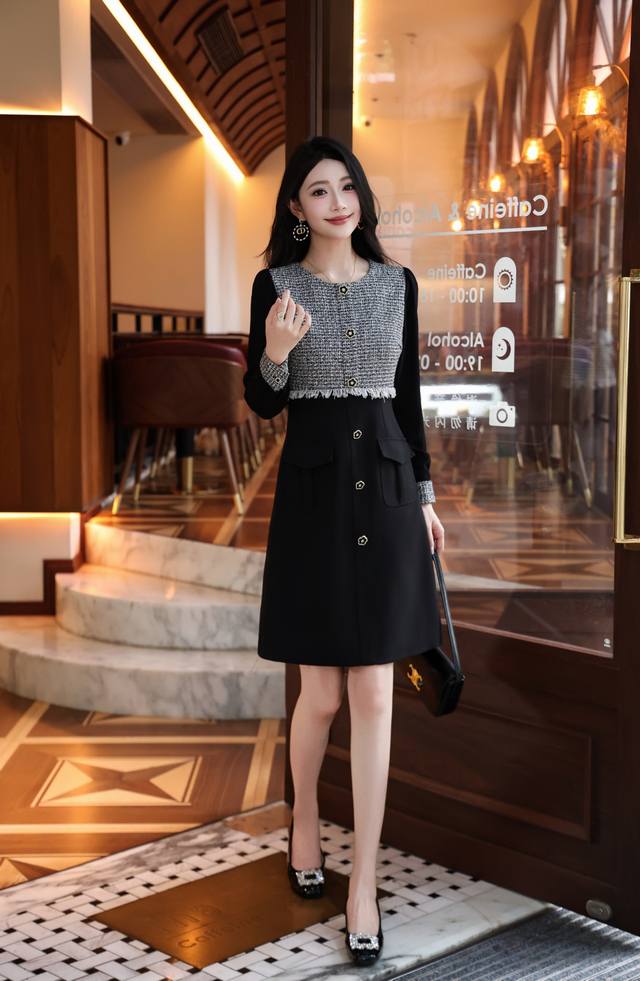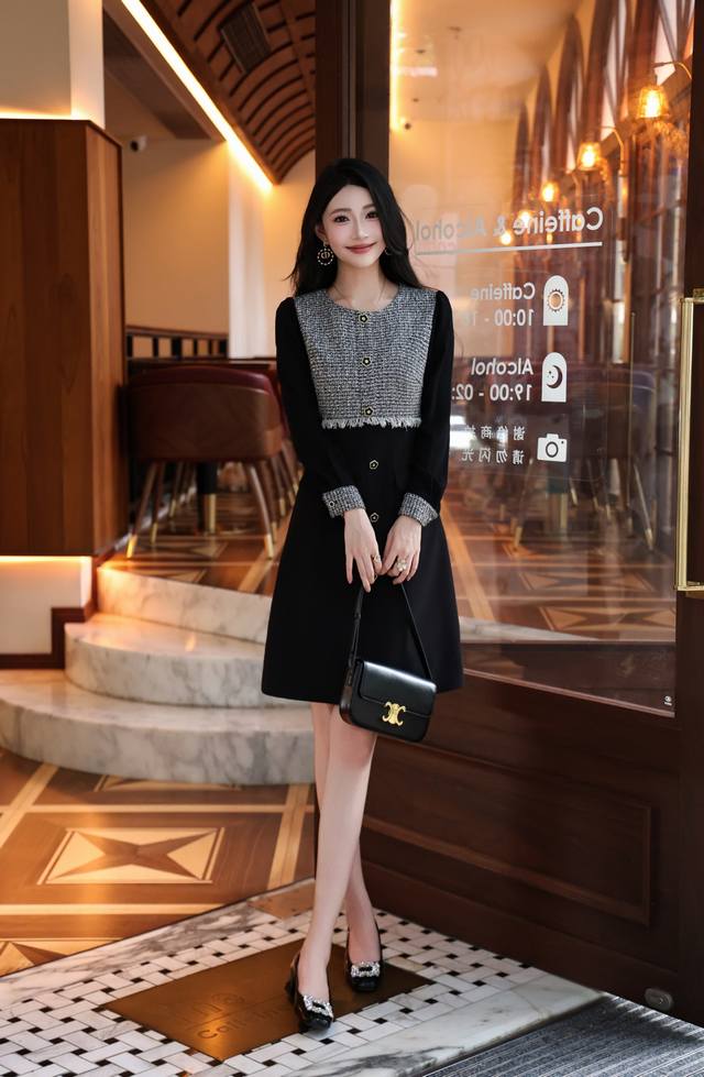 Small Chanel style splicing tassel long-sleeved dress, sweet and age-reducing, h
