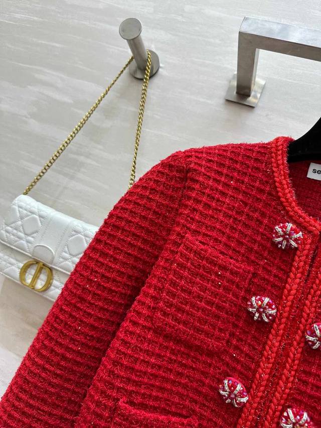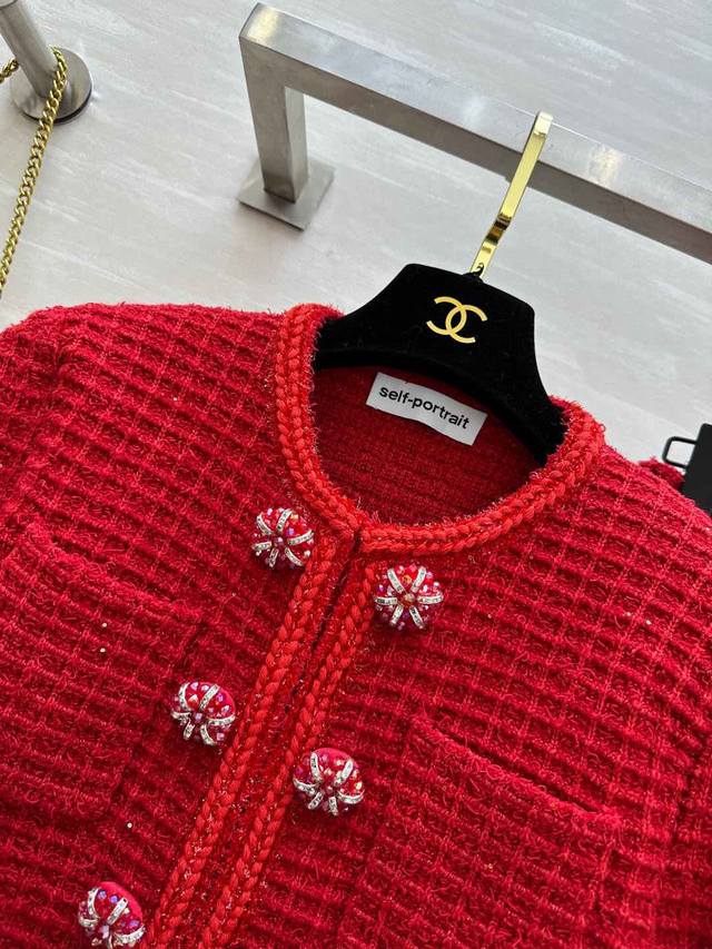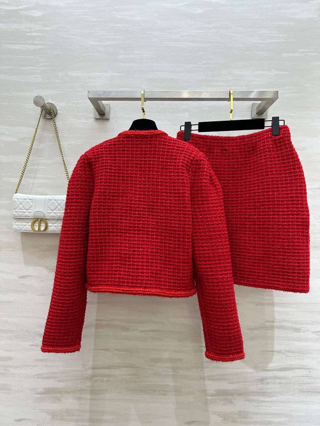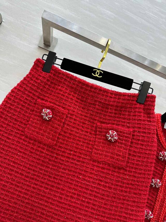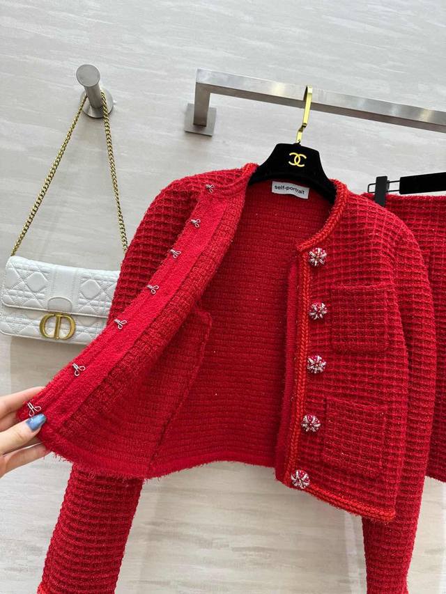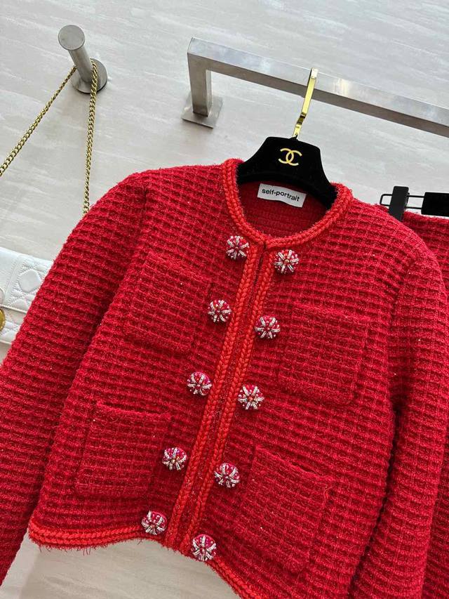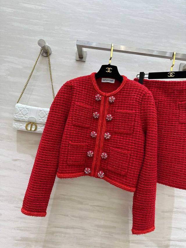 Sp3 Haute couture, heavy-duty, luxurious knitted suit. Chanel-style knitwear embellished with classic rhinestone buttons. The high waistline design elongates the body proportions, outlining the graceful figure and giving it a very noble temperament. Wearing it will instantly give you the feeling of a lady of temperament. High-quality, spot stock first release. Size: SML Xl M Shoulder width: 37, bust: 96, length: 50, skirt waist: 72, skirt length: 48