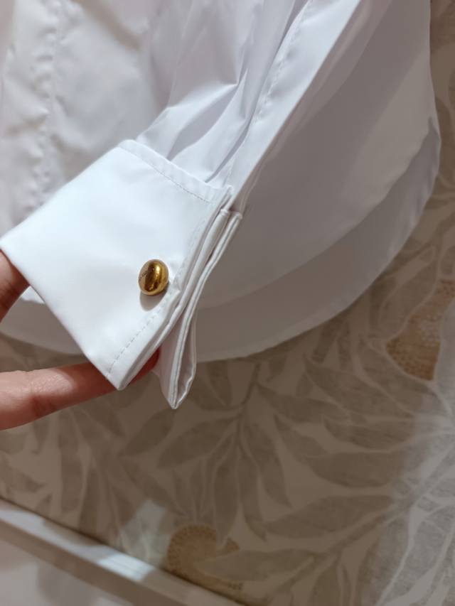 Style 8P The button of the low-cut white shirt is really special, like a small golden bean. I was attracted by this button at first sight. The shirt is also a show style. It is matched with a knitted vest. I will post the picture after the yarn is woven. Because the neckline design is relatively low, the tendons on the neck and the bony jawline are exposed. The low-cut collar effect highlights the charm of a wild beauty. It is not too commercial, forming a personalized style and attitude, and it is not too sharp. The balanced application of fabrics and design details, the designer's interpretation of the white shirt, breaks the convention, can show simplicity and generosity, and can convey freedom and casualness. It has its own clear water lotus, natural texture without carving, and wears aura and attitude.