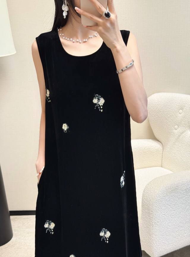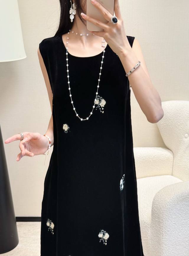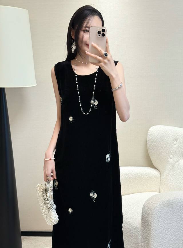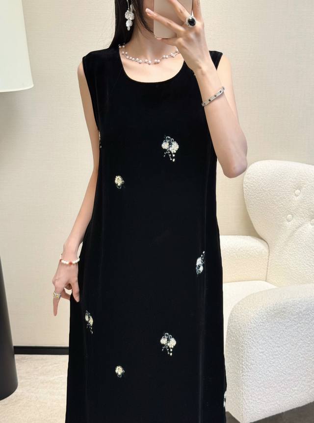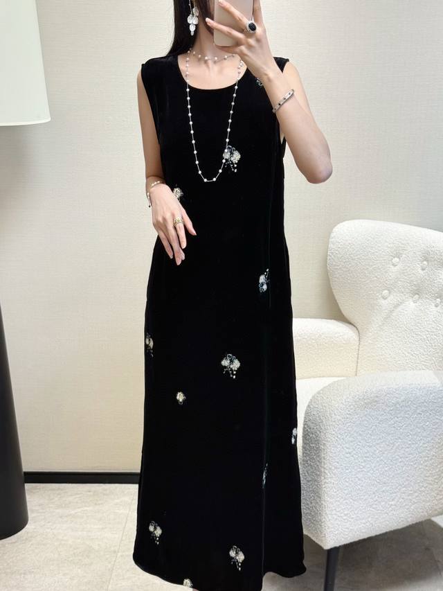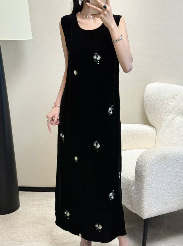 / Spring and summer hot-selling silk velvet embroidered dress with a slit back an