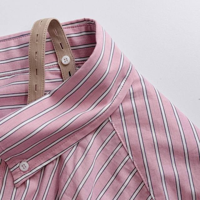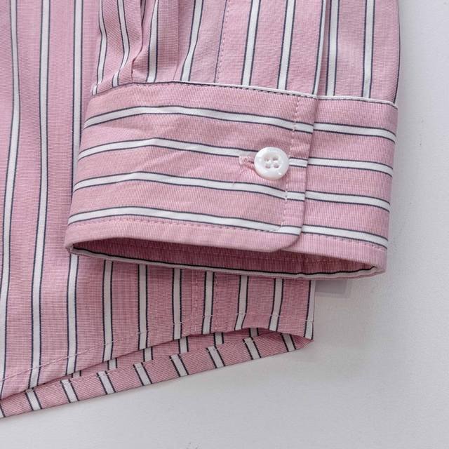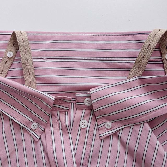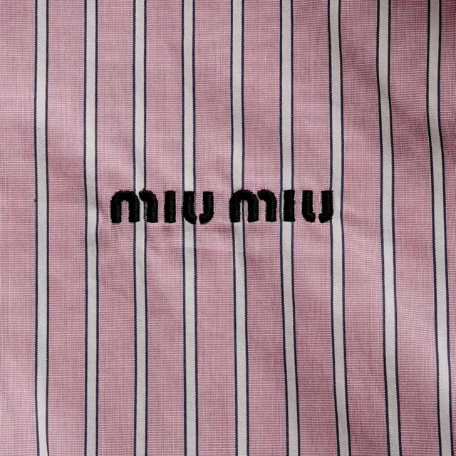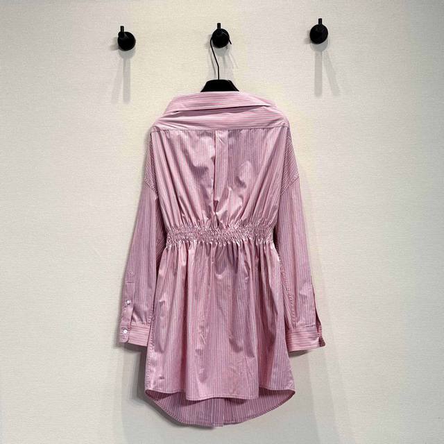 Striped Off-Shoulder Dress 25Ss Winter New Arrival! This Miu striped shirt dress features a red and white pinstriped design, sweet yet casual. The lightweight cotton fabric is super breathable. It has an embroidered logo on the chest, an elastic waist for a flattering and comfortable fit, and adjustable elastic shoulder straps. Color: Rose Pink Size: Sml