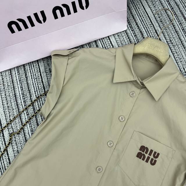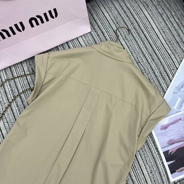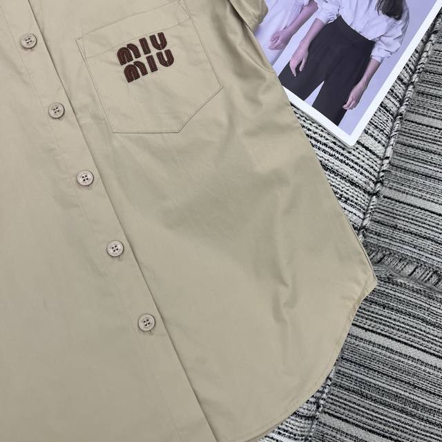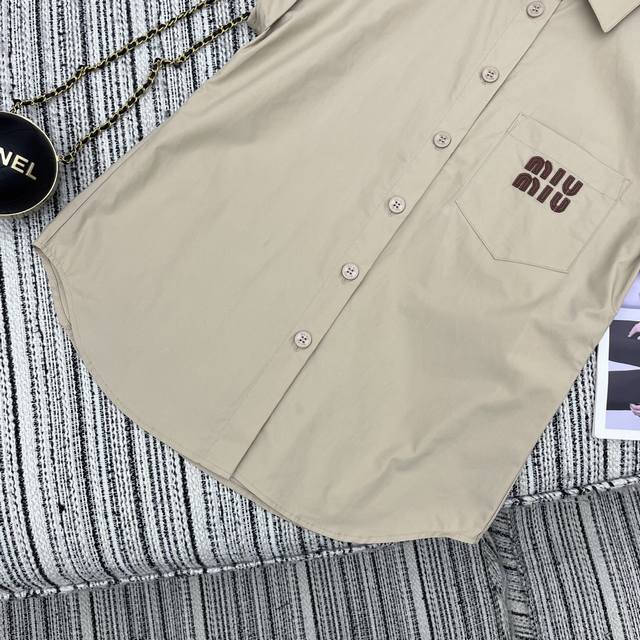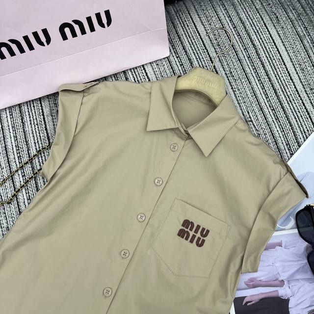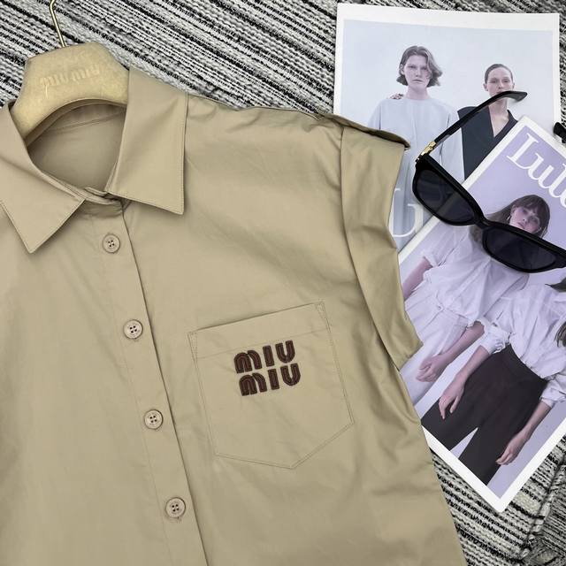 Strongly recommend the 25th spring and summer series Miu* new lapel flying sleeve shirt with high waist shorts suit leather letter patch embroidery embellishment Sml .