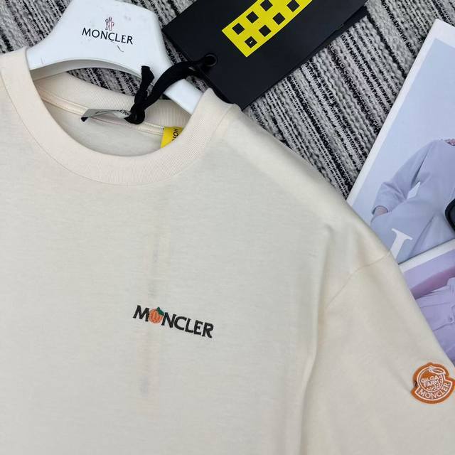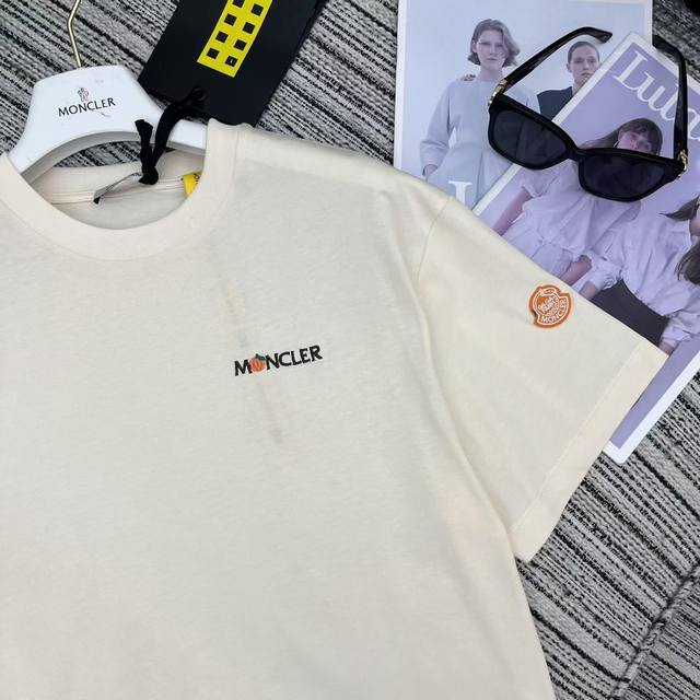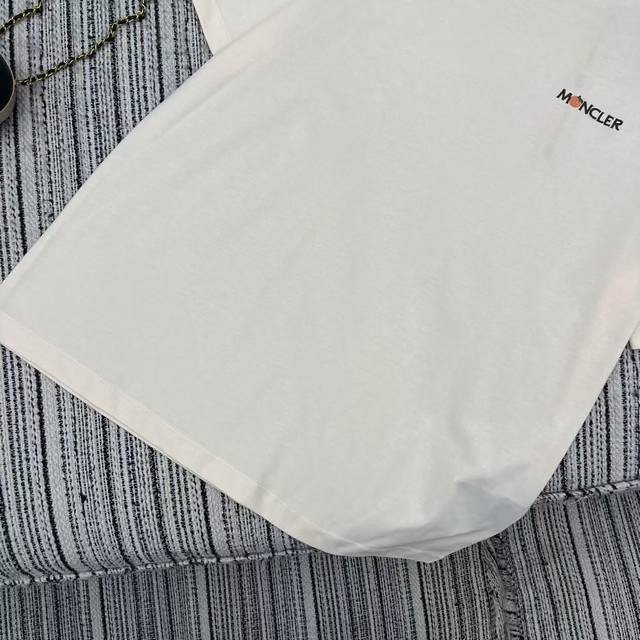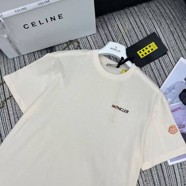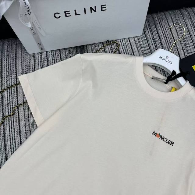 Strongly recommend the 25th spring and summer series Mon* new embroidered letter short-sleeved round neck T-shirt classic sleeve label embellished with two colors Sml .